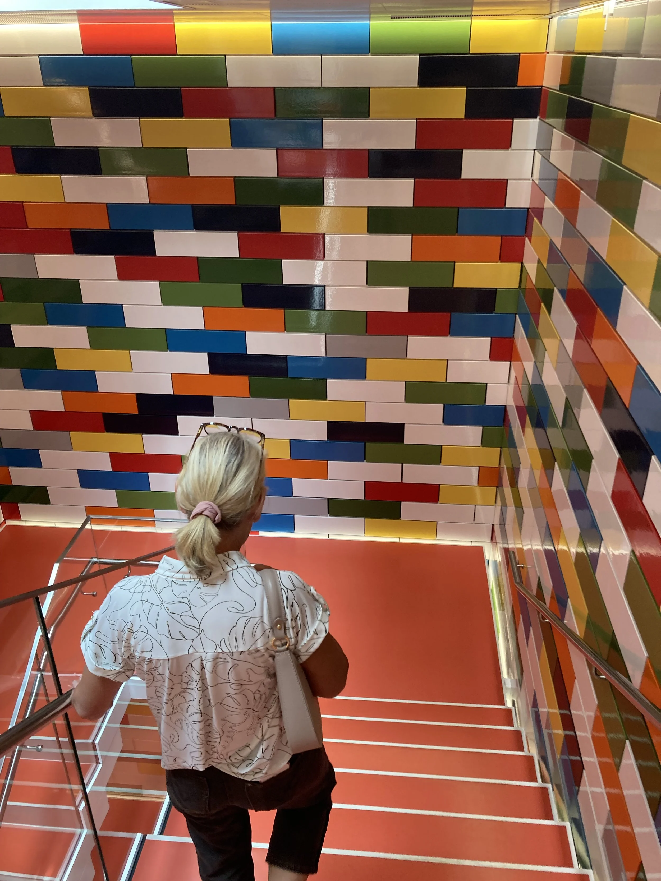 Else and I descend to the basement floor of LEGO House admiring the walls