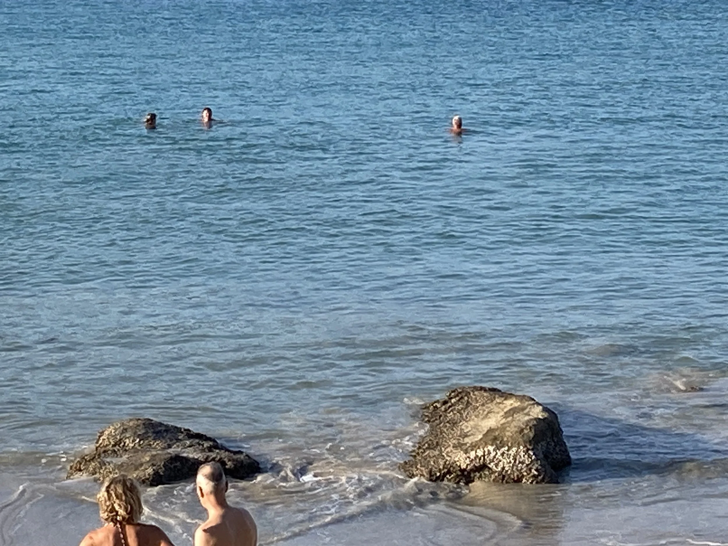 So instead of staring at the sun coming up over the horizon, we walked up and back the half mile of beach a number of times to get some morning exercise. At 6am we were by ourselves. By 7:30am, there was a large group of joggers who were going for it and those who were planning to spend the day at the beach were arriving.