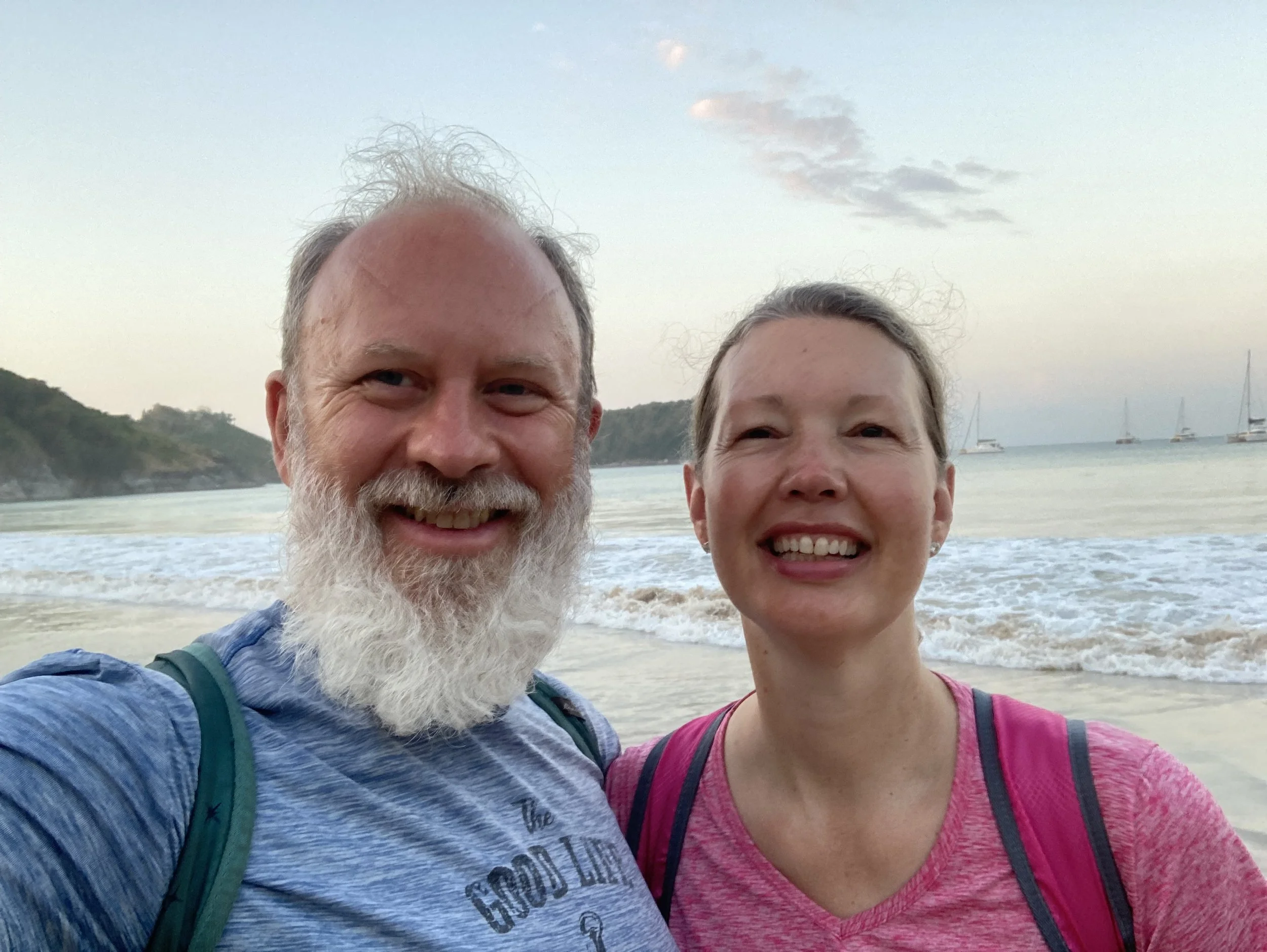 Nai Harn Beach sunrise selfie … we’re facing the sun behind a hill