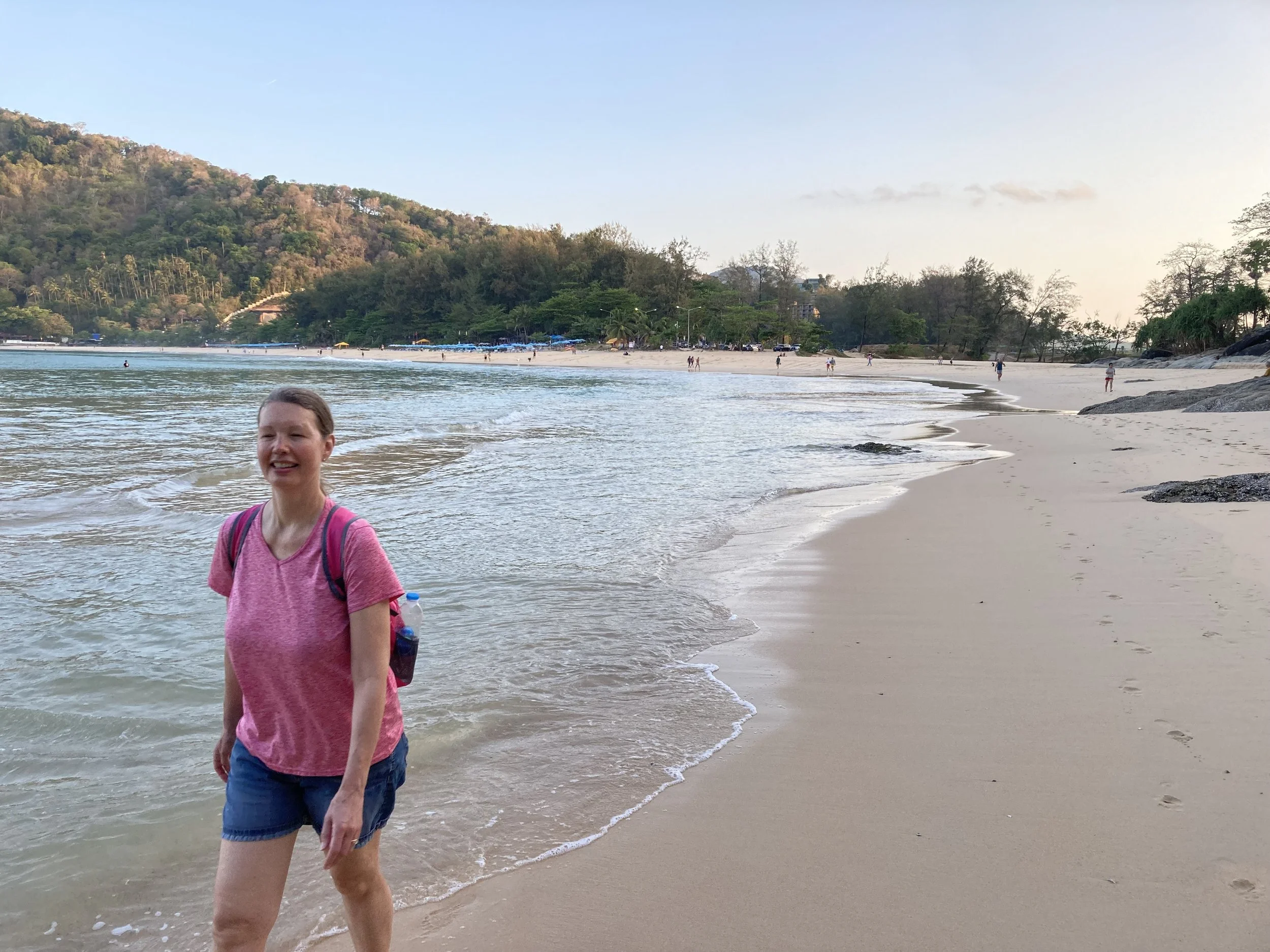 The plan was to go to Nai Harn beach at 6am and watch the sun come up. We got there right at 6am and the sun did come up at 6:35 as anticipated, but the beach was facing west and the sun was blocked by the nearby mountains, so we need to come back for a sunset instead. Still a beautiful morning at the beach.