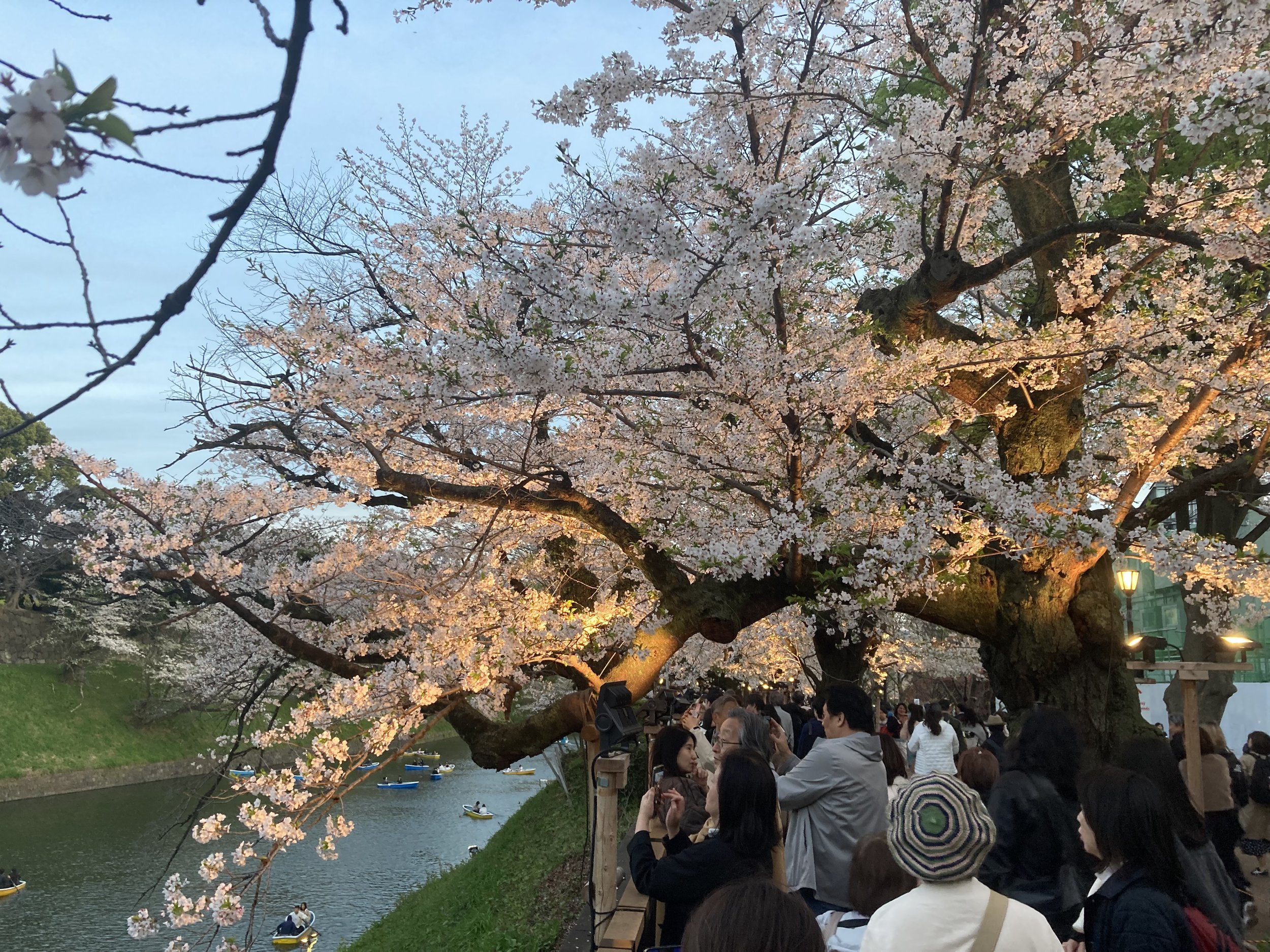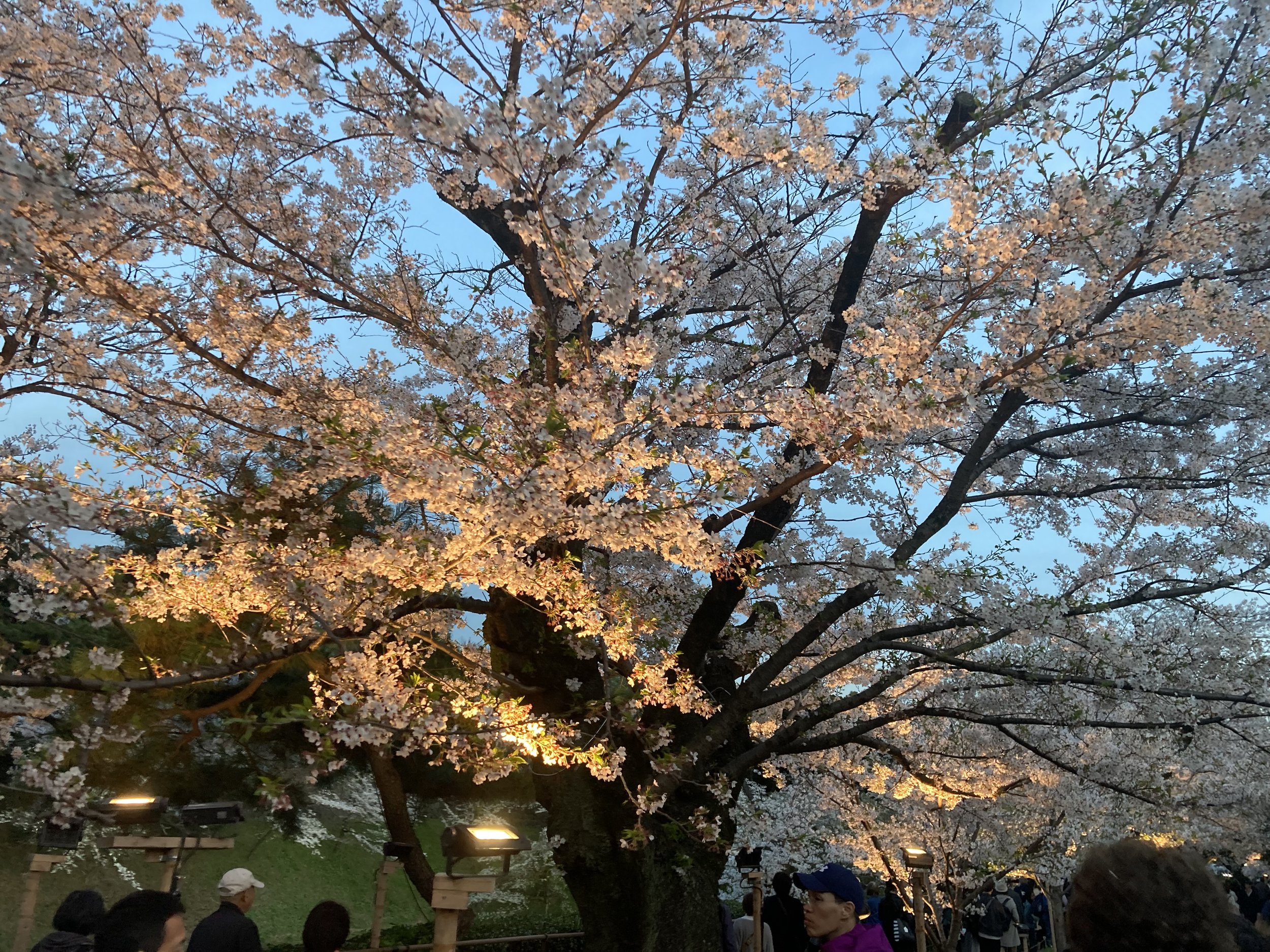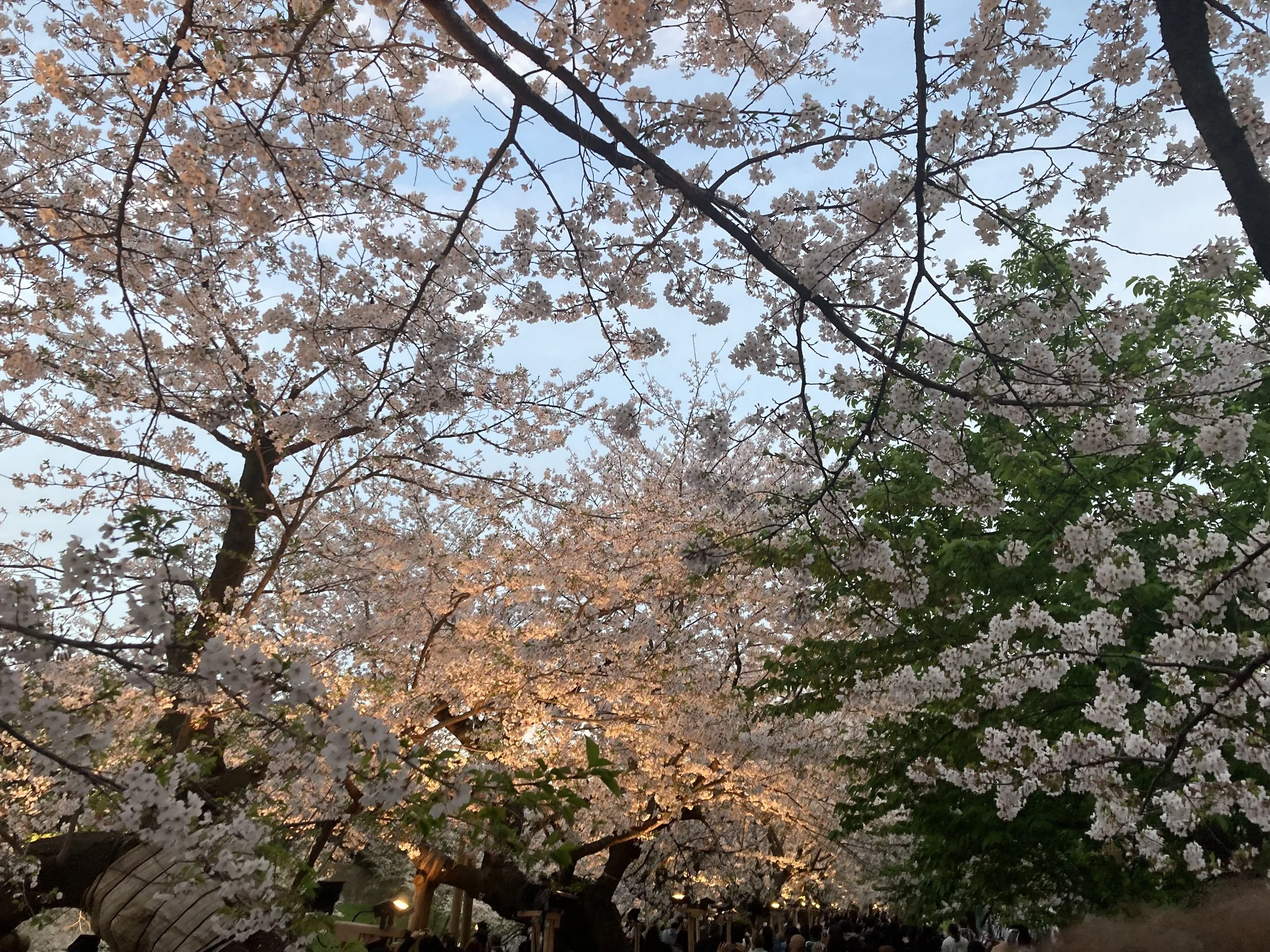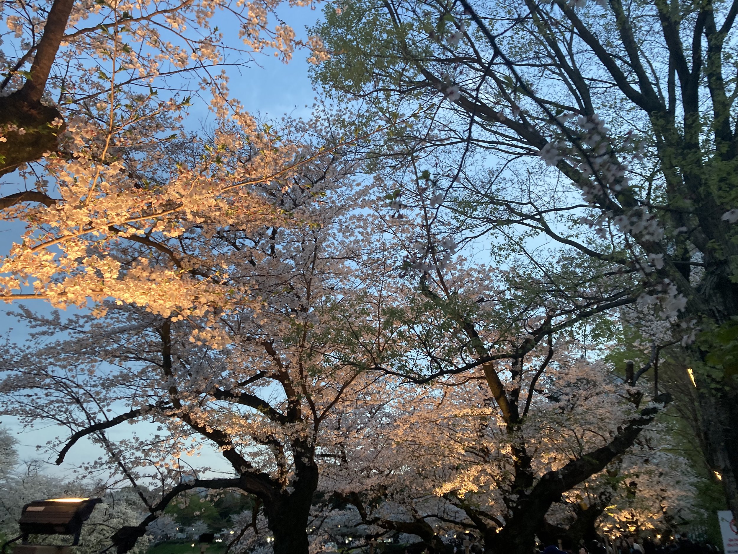 I wouldn’t have thought that the time of day you visit the cherry blossoms here in Tokyo mattered. But I was wrong. At 6pm, the lights go on and these are no ordinary lights. This is professional lighting that changes your entire experience of visiting the cherry blossoms. The darker the better.