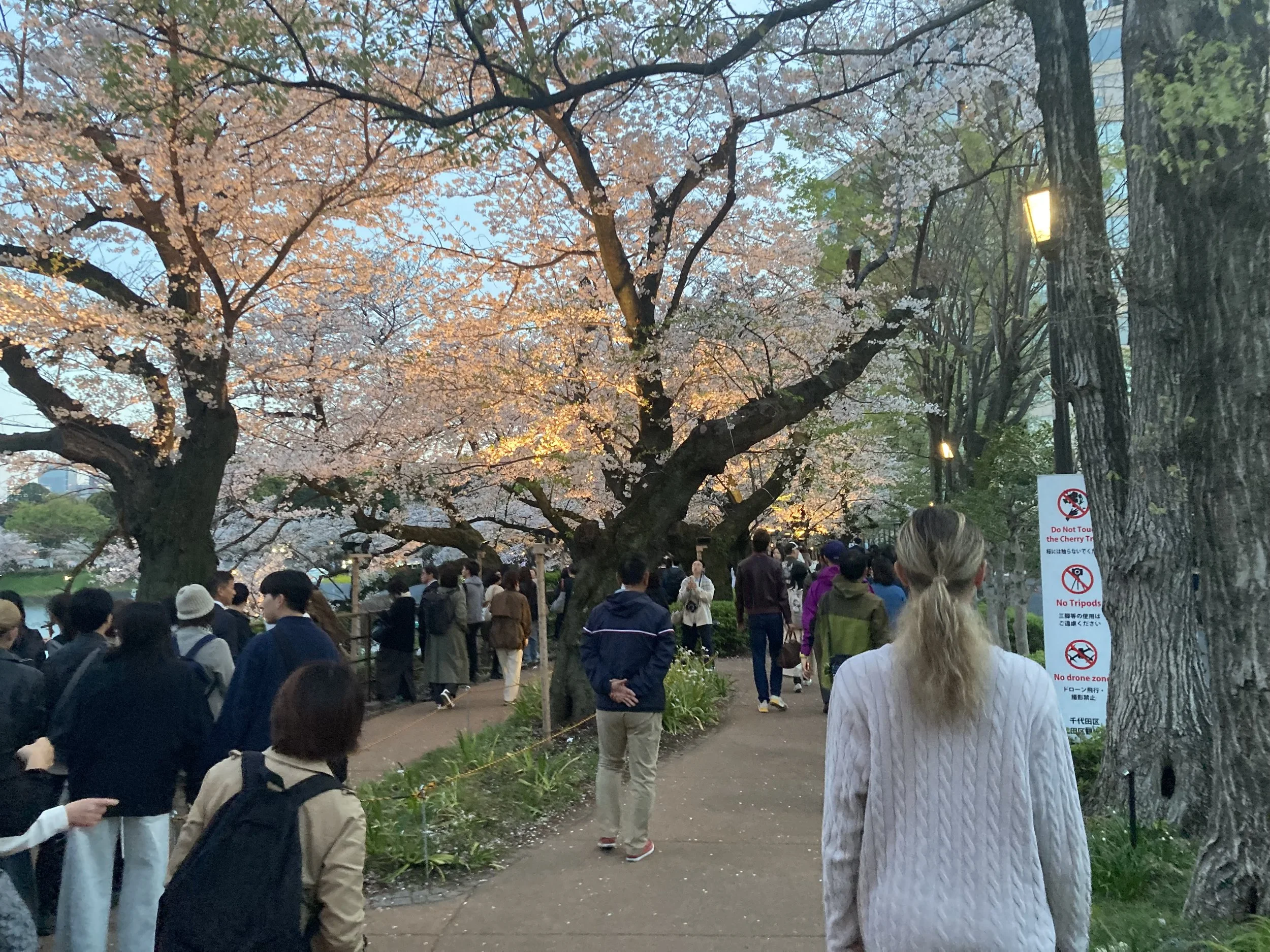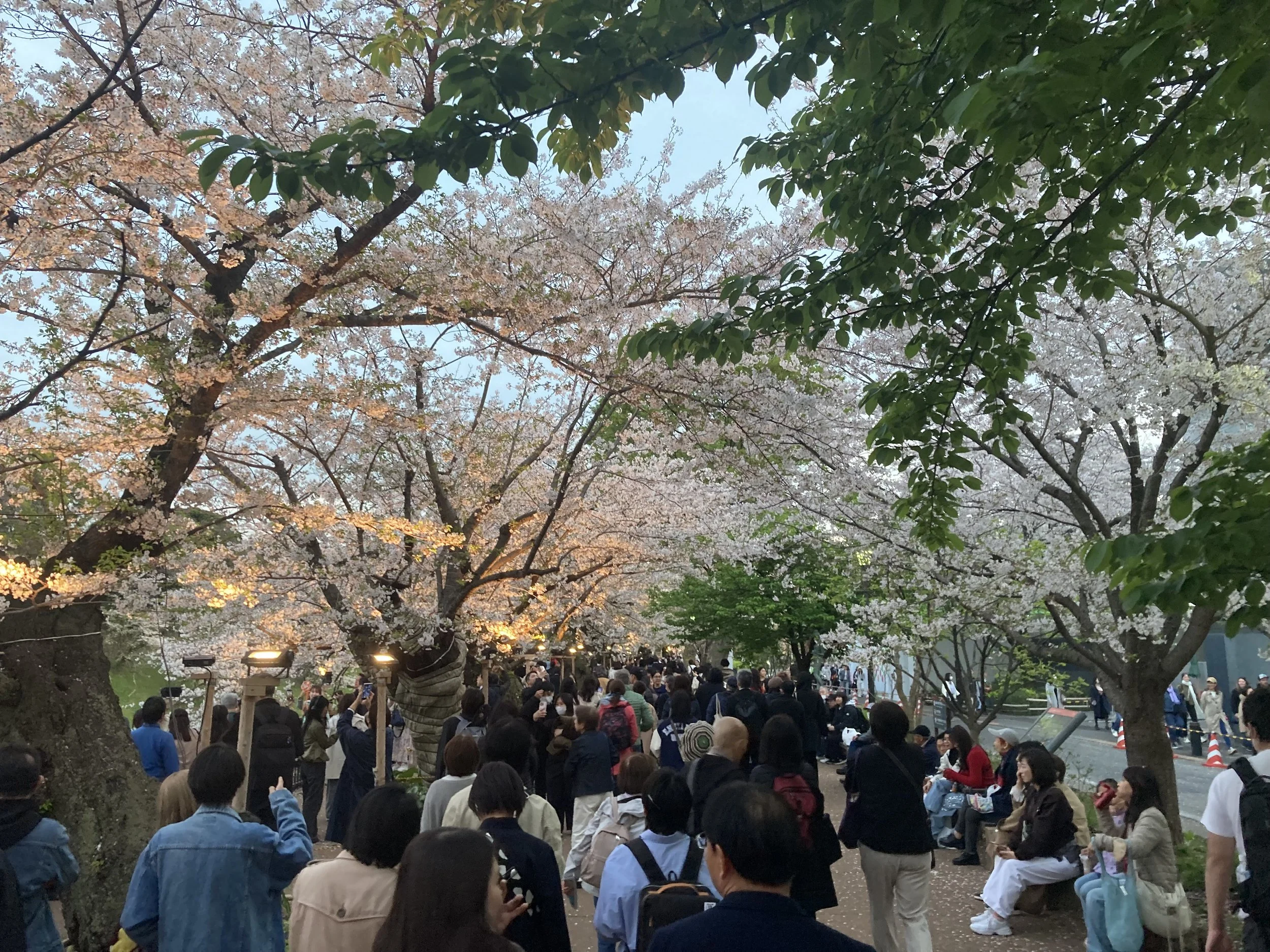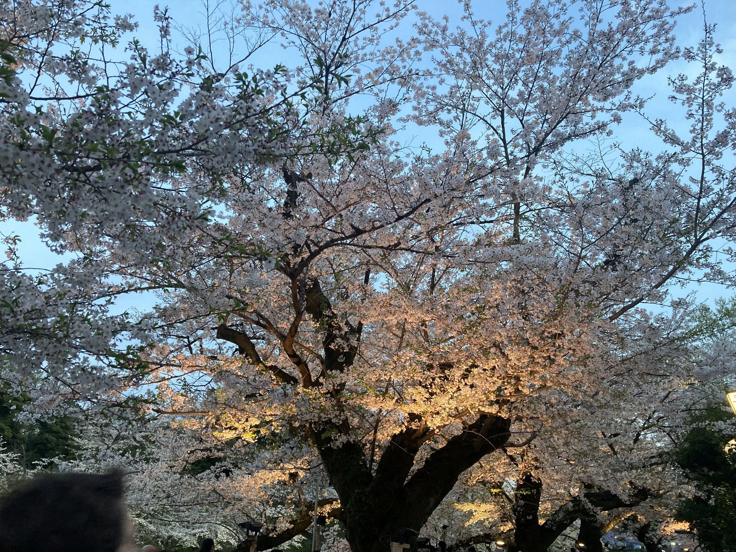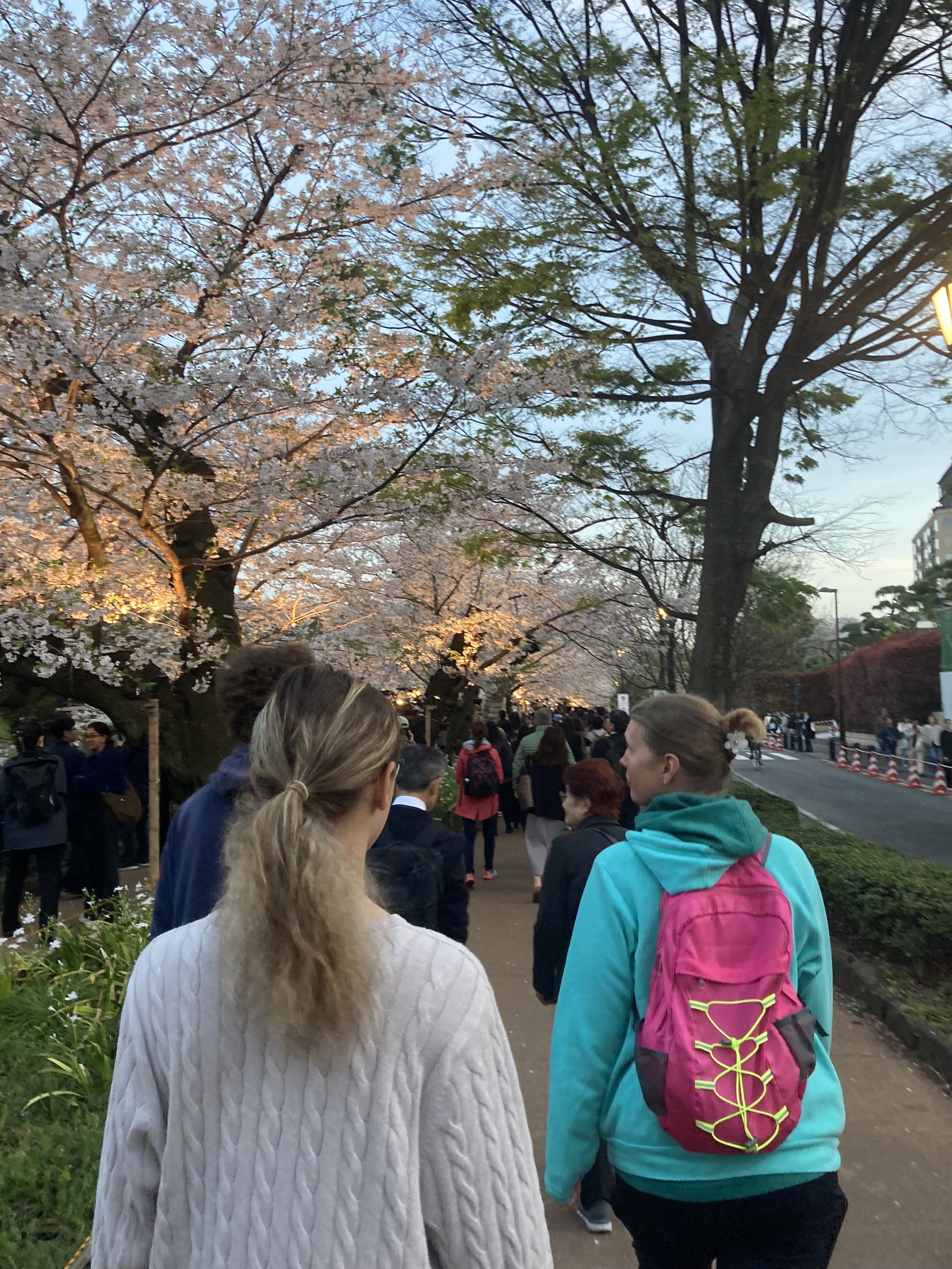 I wouldn’t have thought that the time of day you visit the cherry blossoms here in Tokyo mattered. But I was wrong. At 6pm, the lights go on and these are no ordinary lights. This is professional lighting that changes your entire experience of visiting the cherry blossoms. The darker the better.
