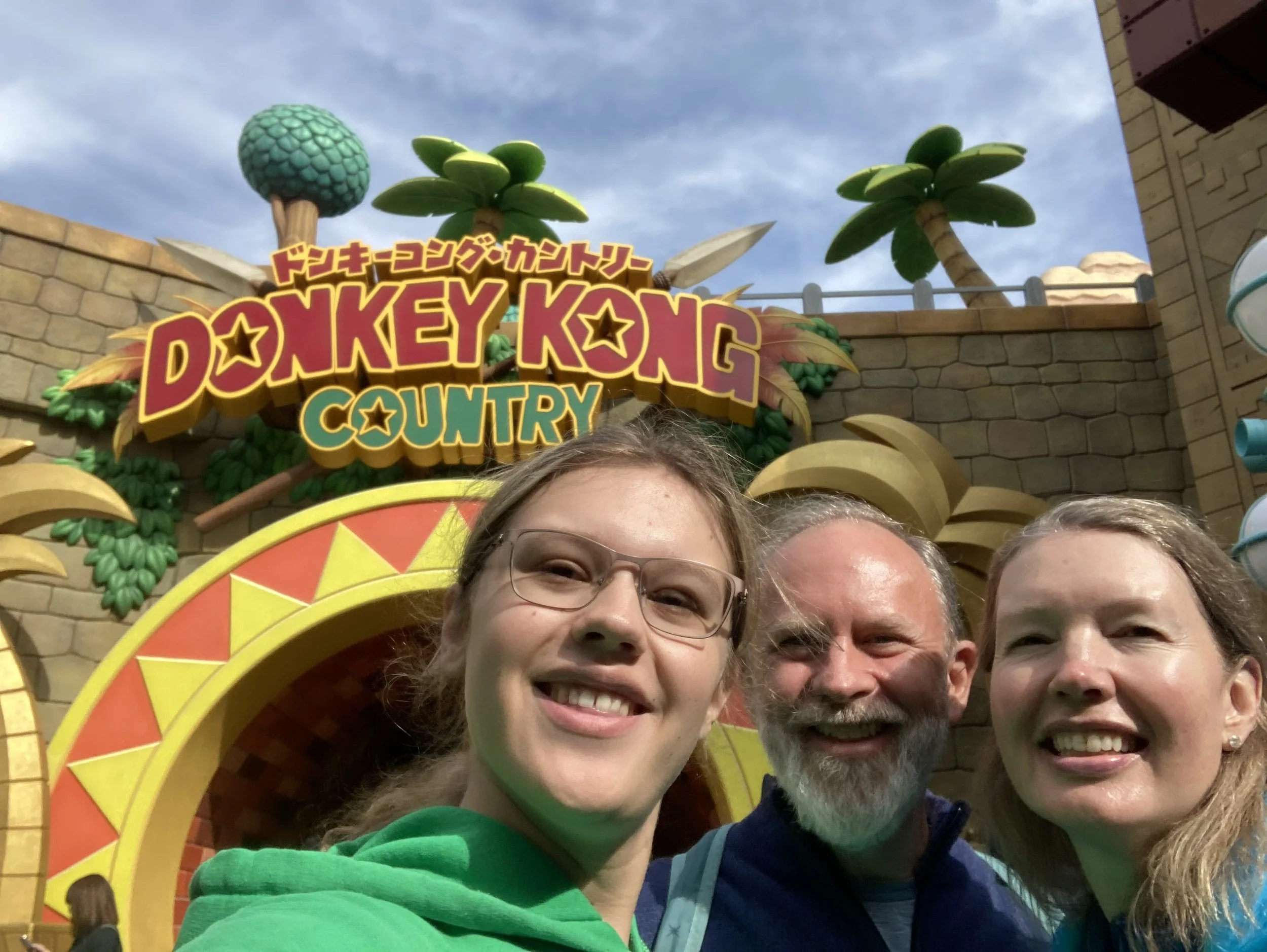 One of the funniest things was the one and only ride all three of us did together, the Donkey Kong Mine Cart ride. There’s a “back story” which you can watch here on YouTube in English. But, of course, we were in Osaka, so the whole story was told in Japanese. And then throughout the rest of the line, we heard a repeating looped audio track, again all in Japanese with just TWO WORDS in English, GOLDEN BANANA. And whoever recorded this track was having so much fun saying those words in every possible emphasis.