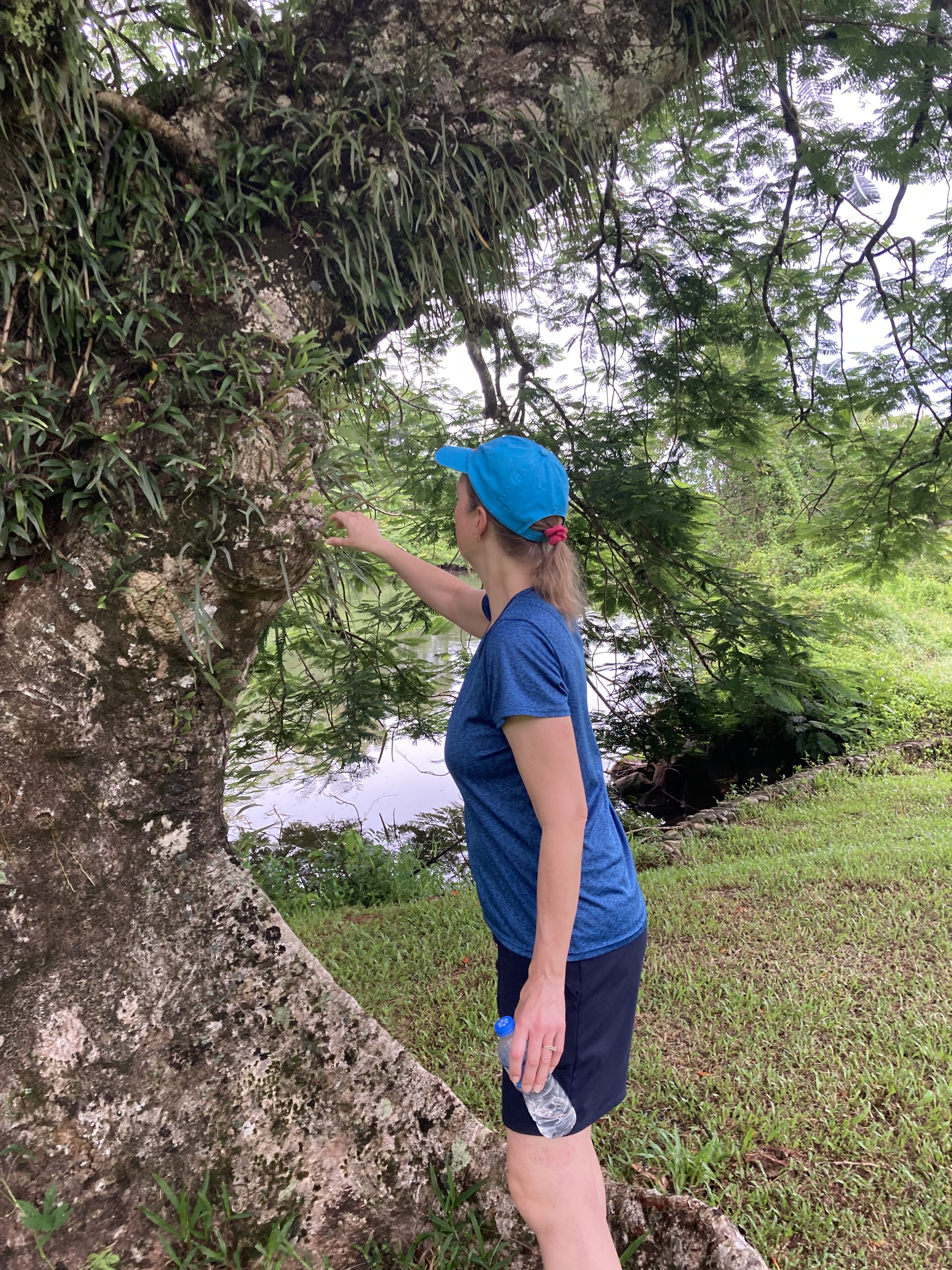 Elena explores the plant leaves growing off of the base of this tree
