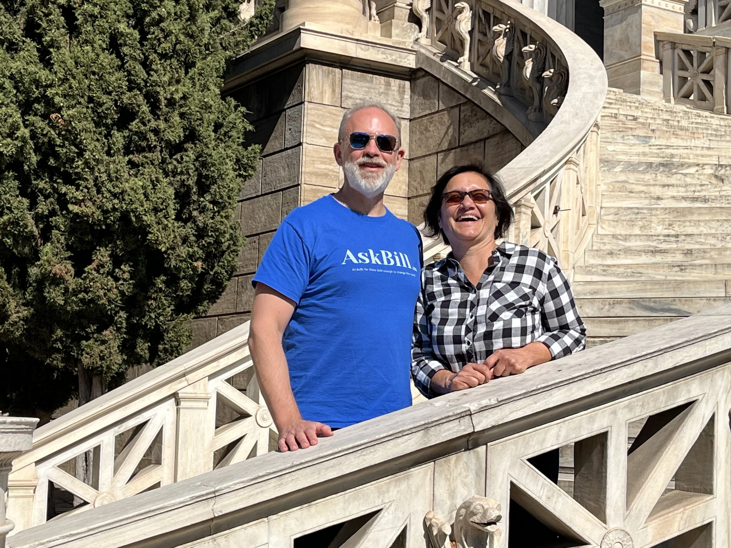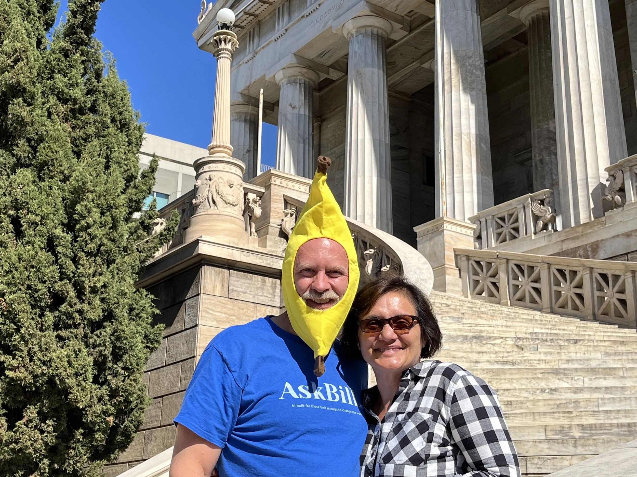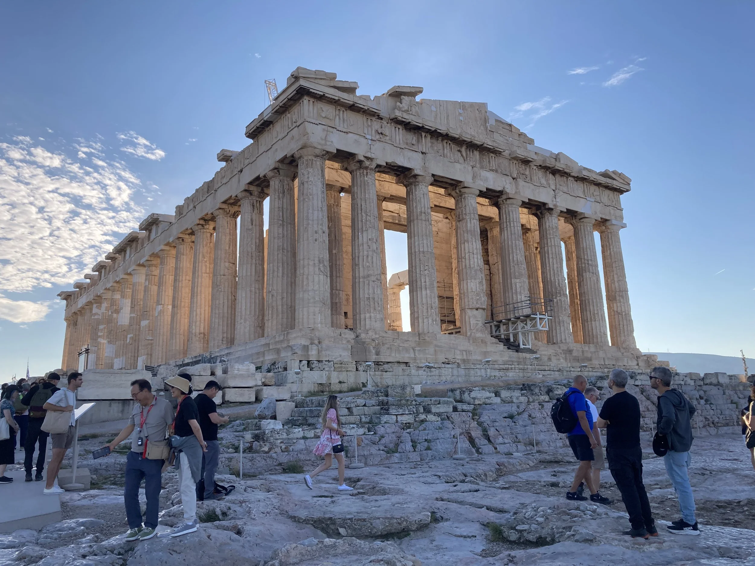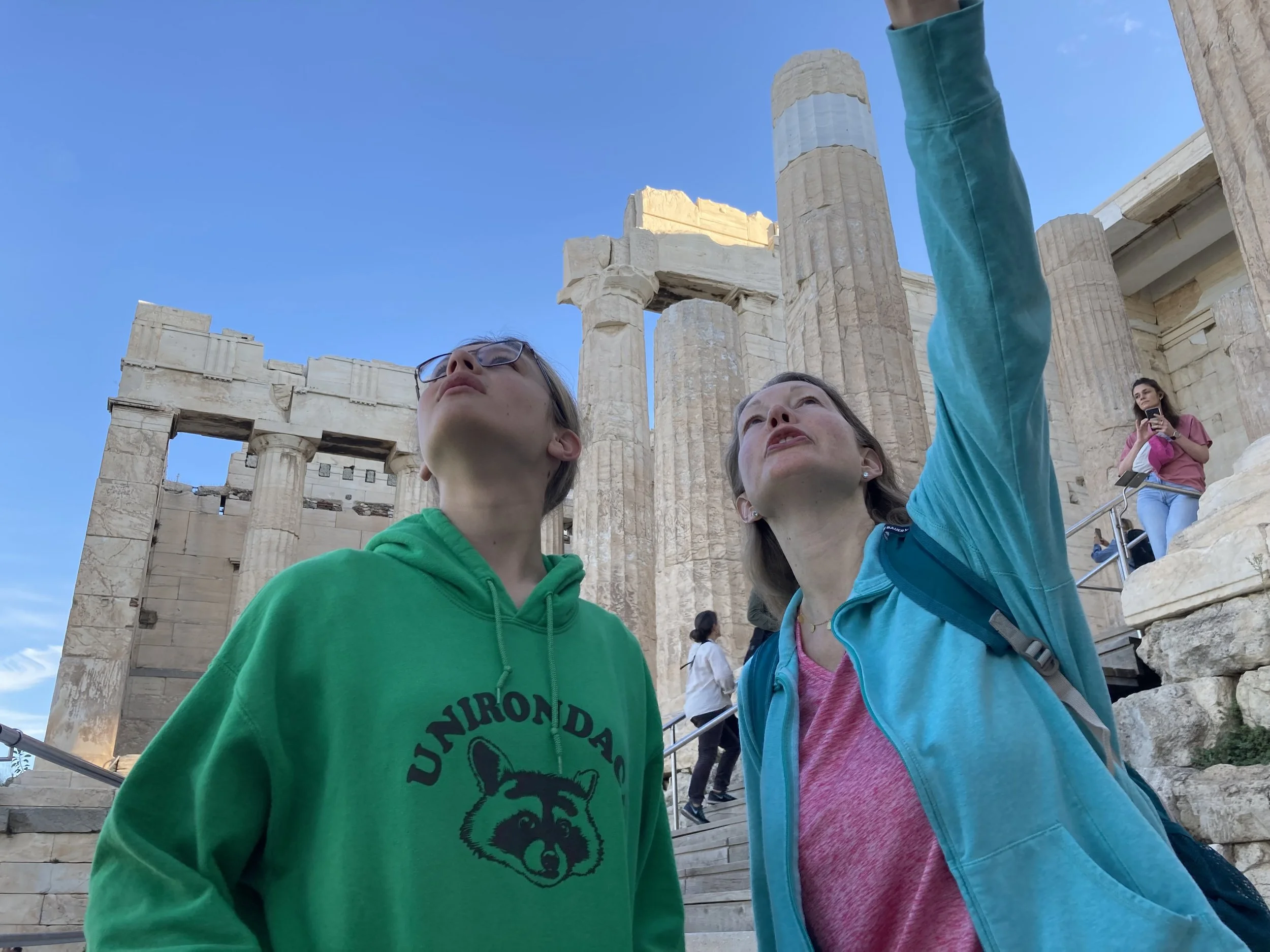 Bill, Elena and Violet standing in front of the Parthenon in Athens
