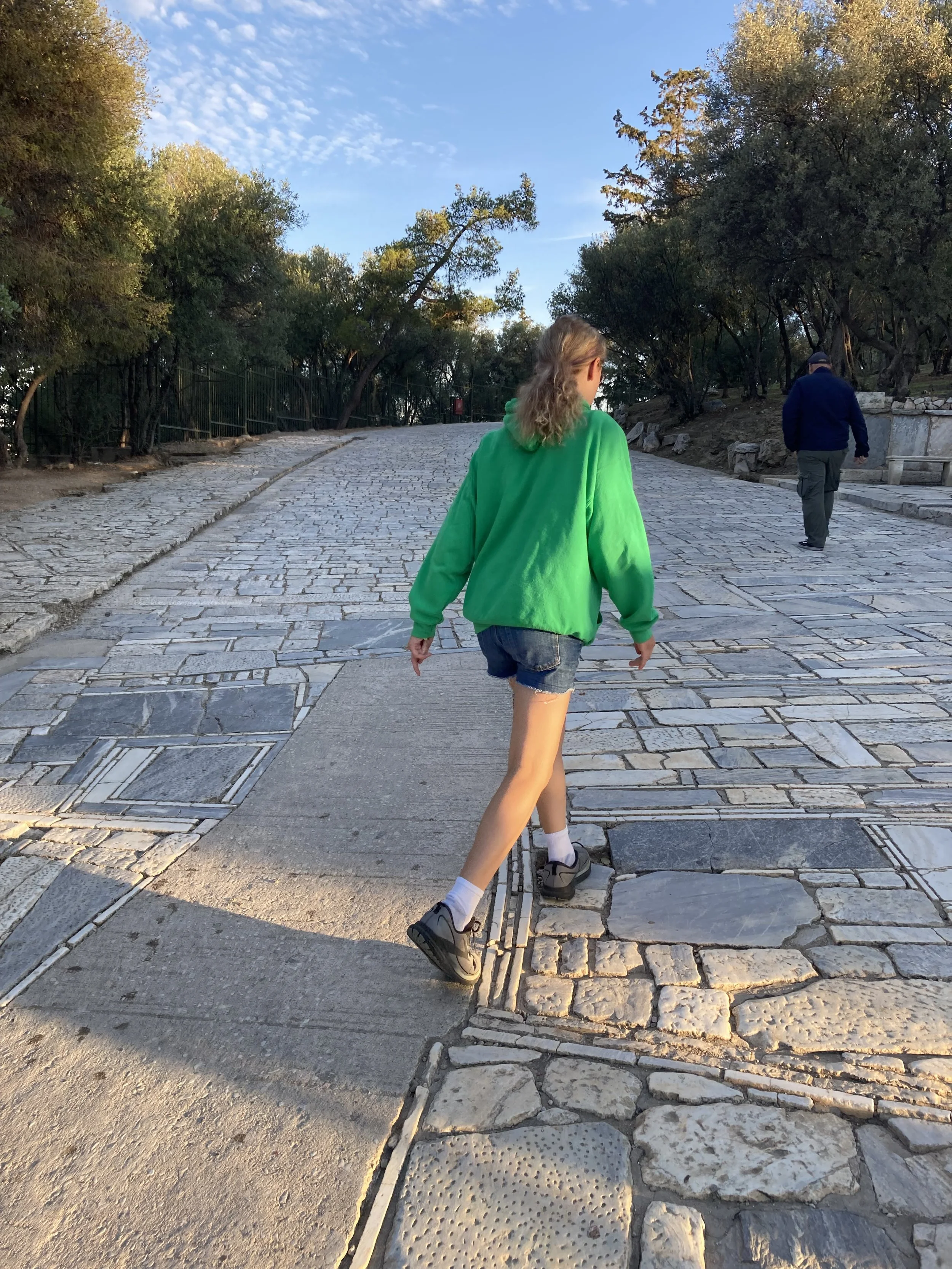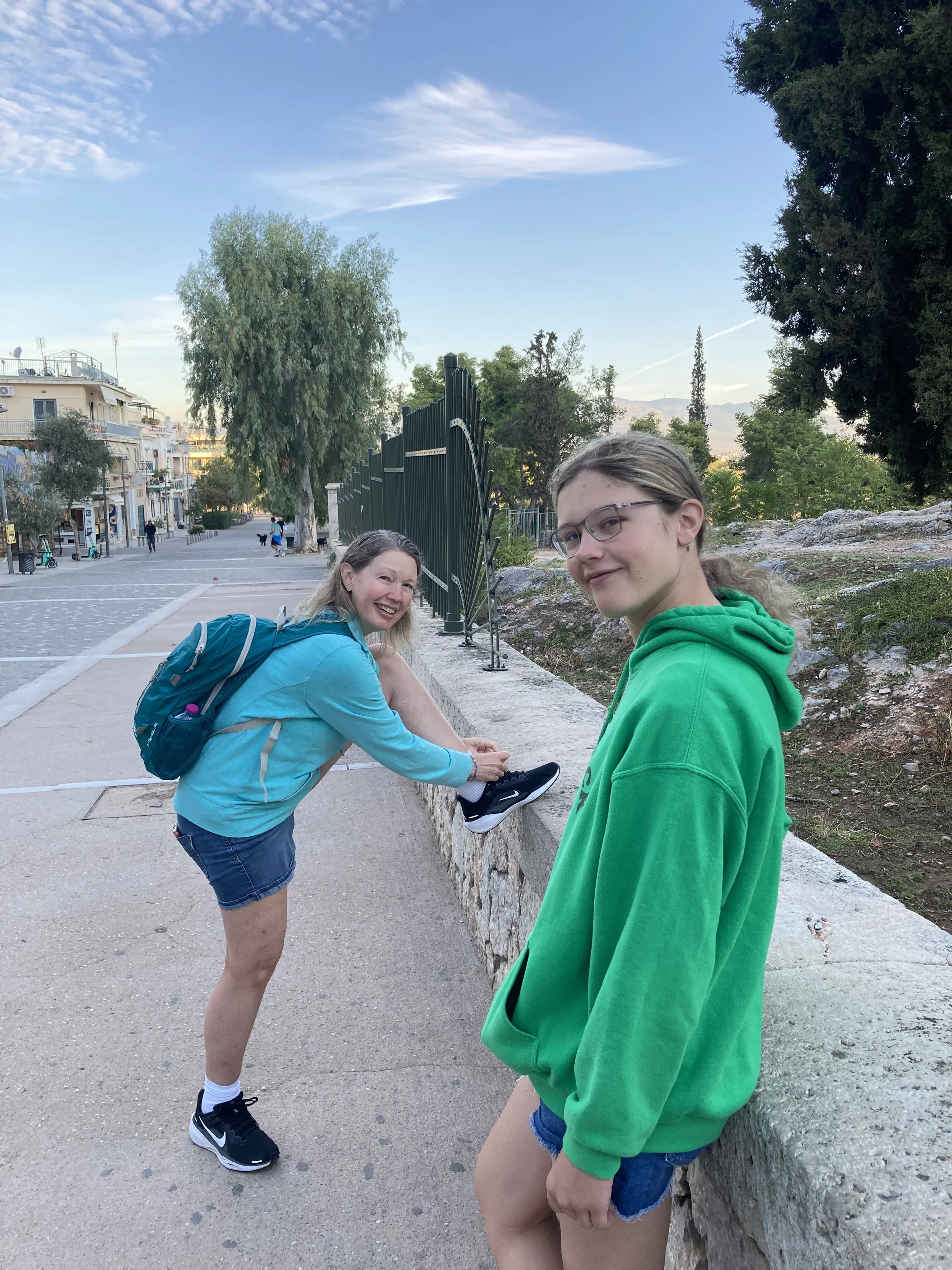 Lastly, Evi and I walked back to my hotel together. She hadn’t seen this part of Athens as it’s been continuously updated and developed since the last time she’d been in this part of town. It was nice that there was at least something I could expose her to while I’m here. I was able to get Violet to pop down for one final group picture.