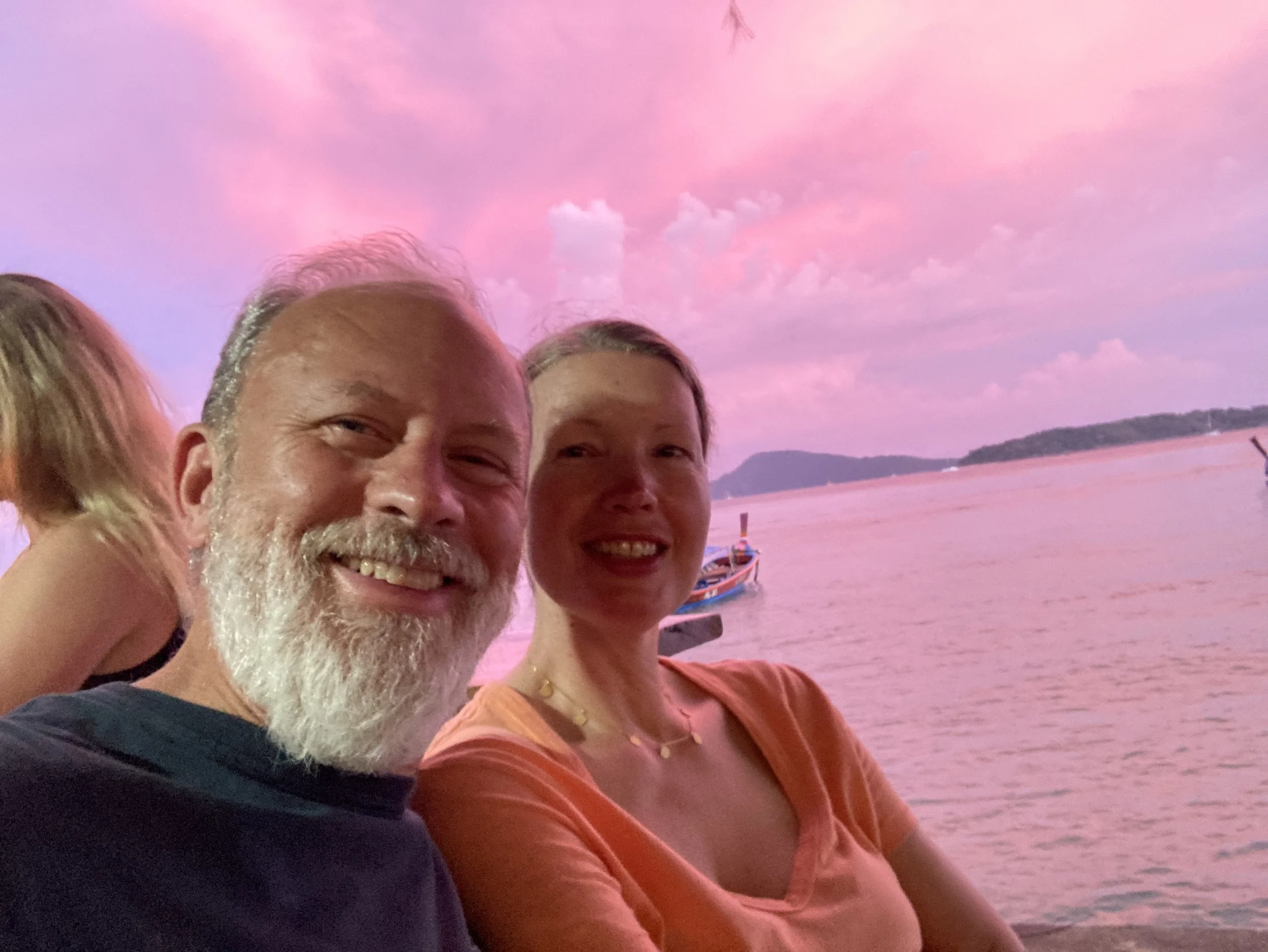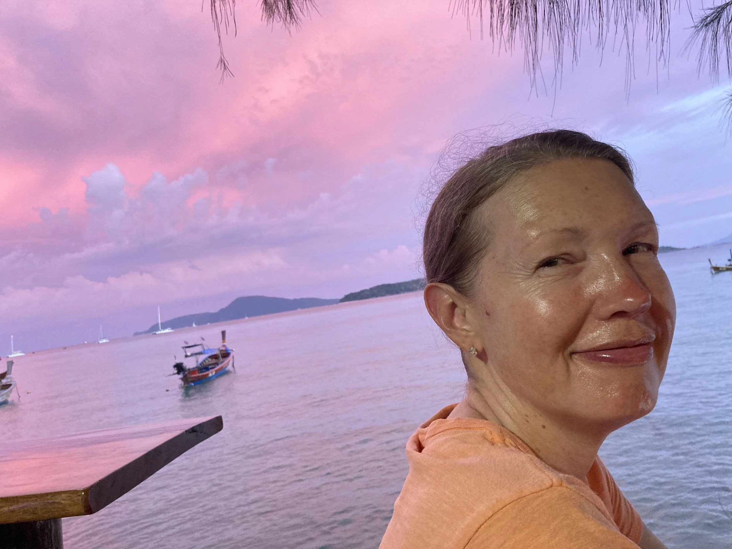 Cotton candy sky as we enjoy our pizza by Rawai Beach, Phuket