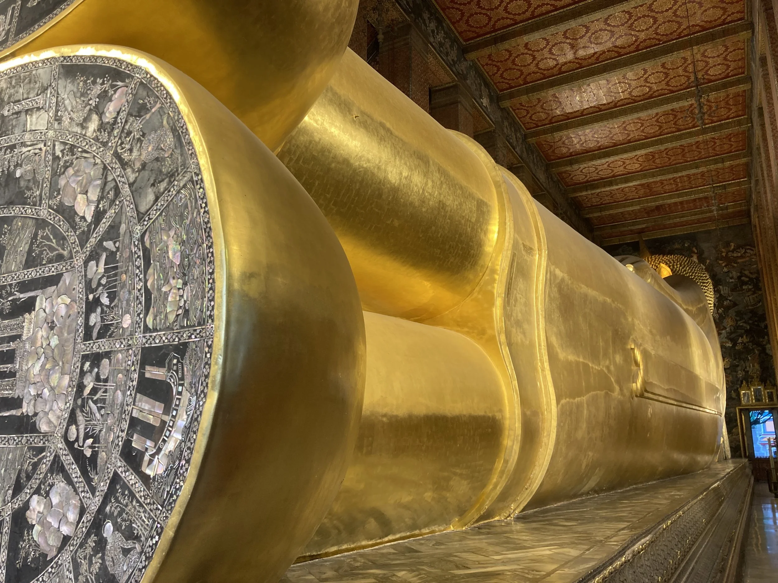 The Reclining Buddha is a massive, gold-plated statue measuring 46 meters long and 15 meters high. It’s truly breathtaking to behold. On the one hand, it’s a sacred symbol in that it represents the Buddha's entry into Nirvana. On the other hand, it’s just a giant structural impossibility that’s staring you in the face. Most impressive.