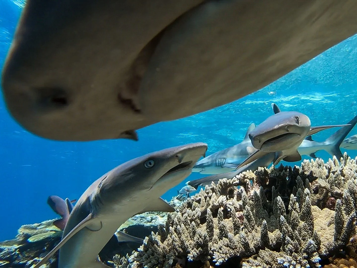 Witnessing multiple sharks being hand-fed by our instructor