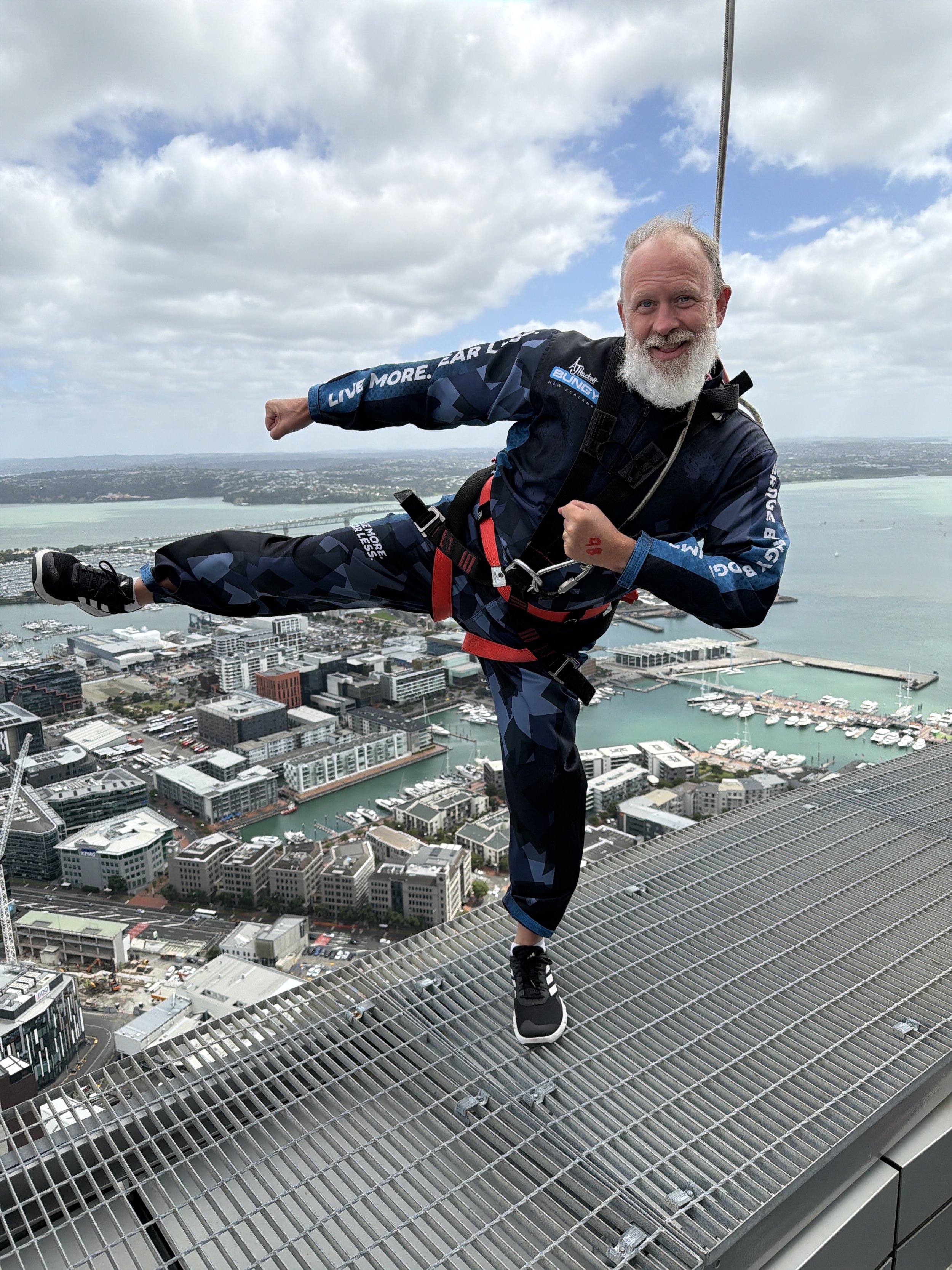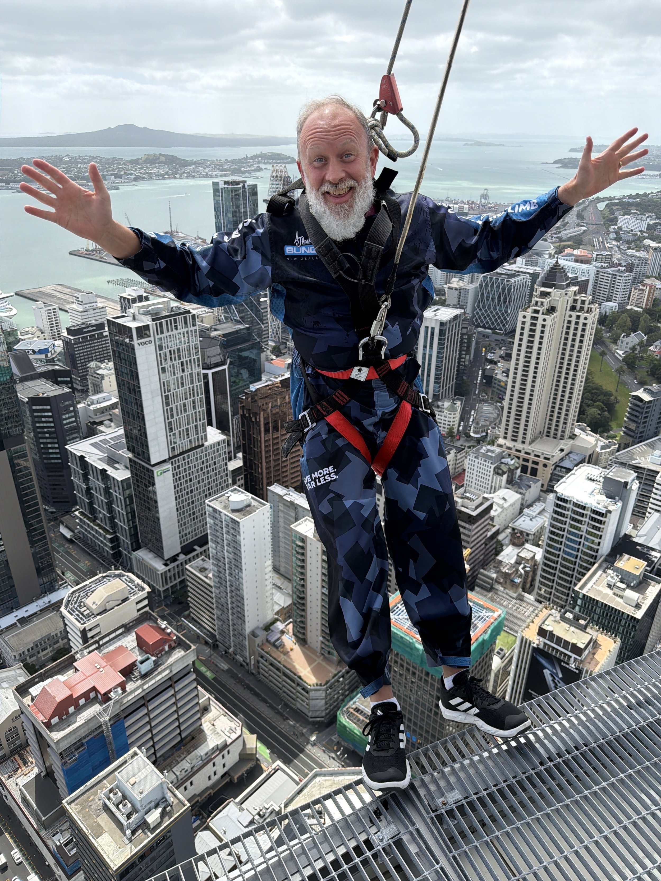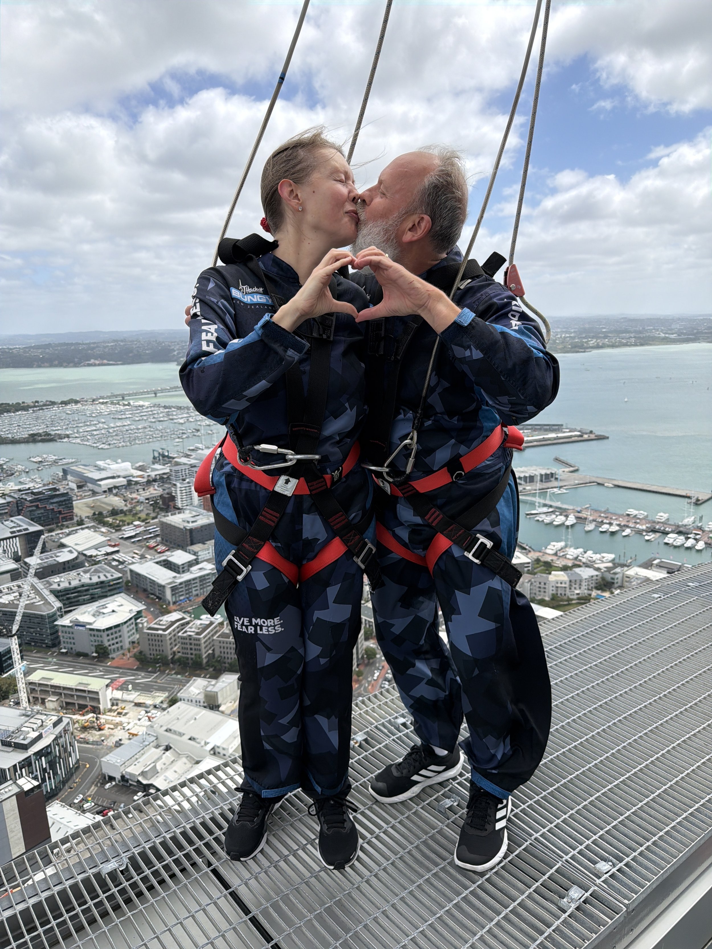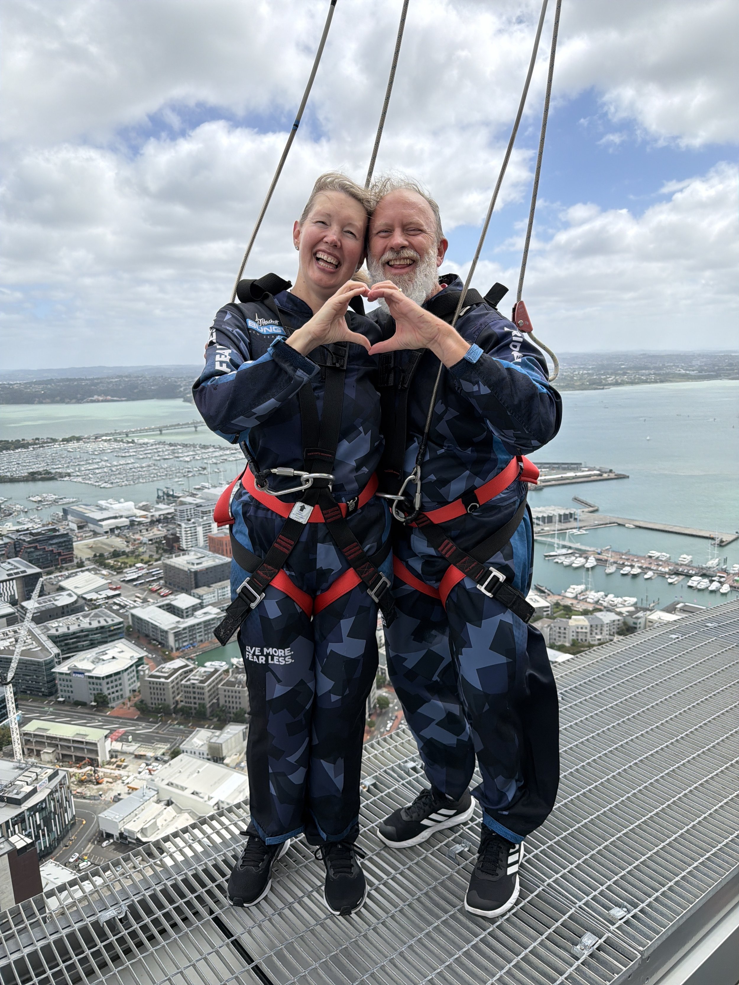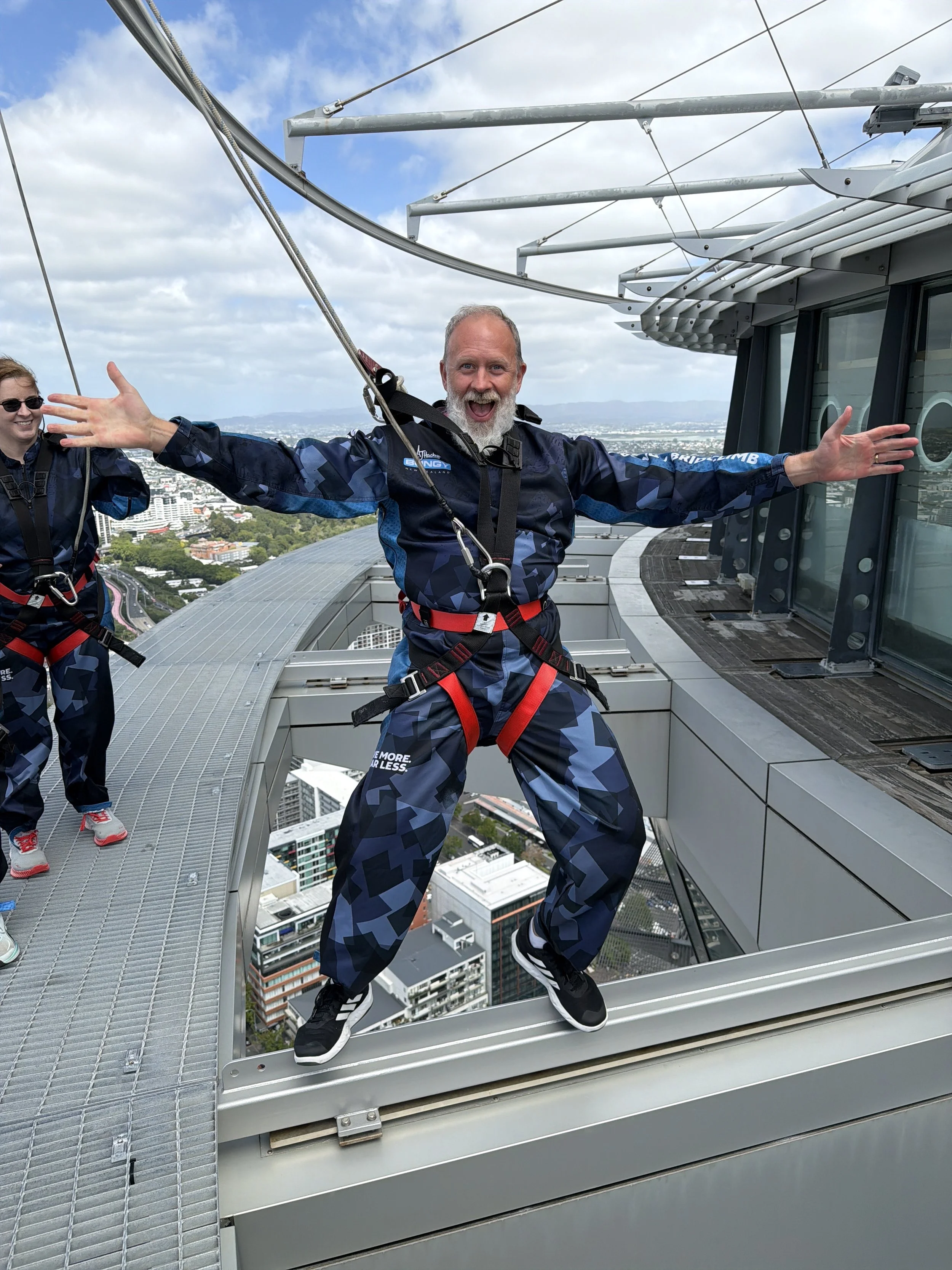 And yes, you read that right! My wife, Elena Carmody, joined us for both the walk around this 53 story tower and then jumped off it. Below, I have video of each of us walking around and then jumping the full 192 meters which is 629 feet! Yes, this was a new level that each of us unlocked today. It felt so empowering and incredible. New Zealand for the WIN when it comes to adrenaline. This has been an incredible month for all of us! And it was amazing to do this with Elena today.