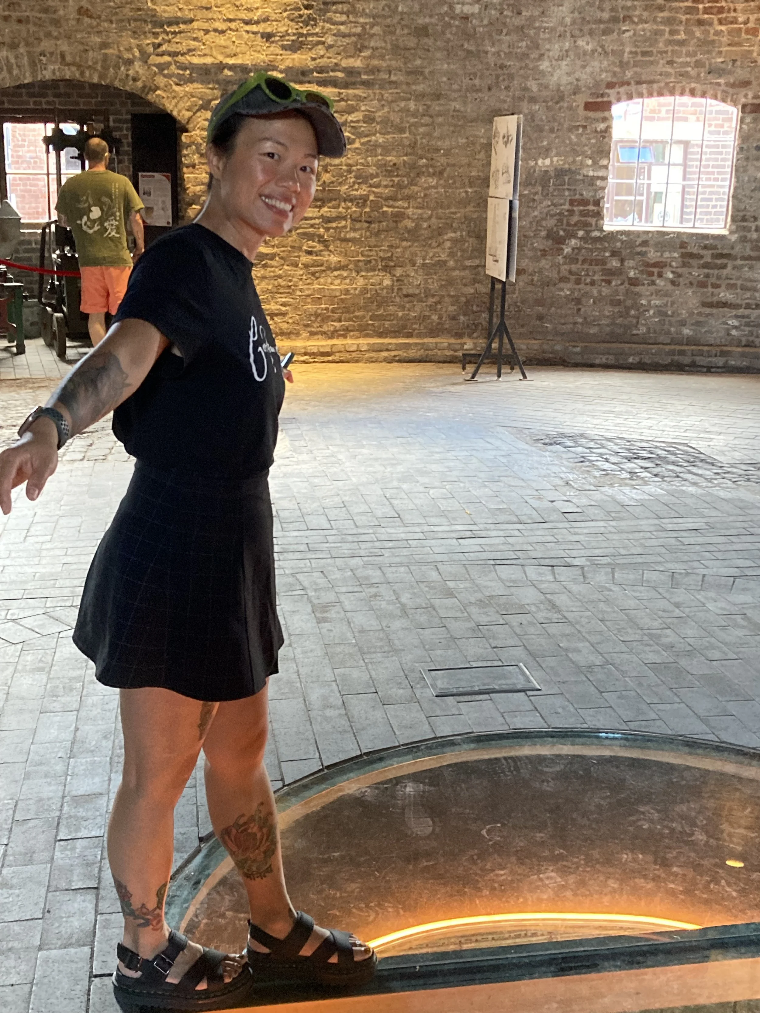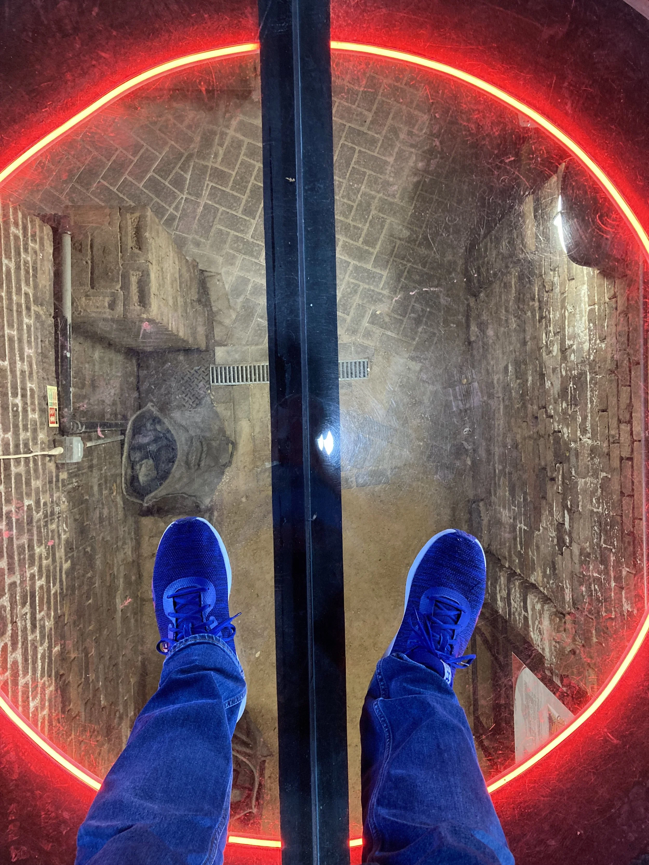 Glass floors made it fun to walk over and see what’s below the old factory.