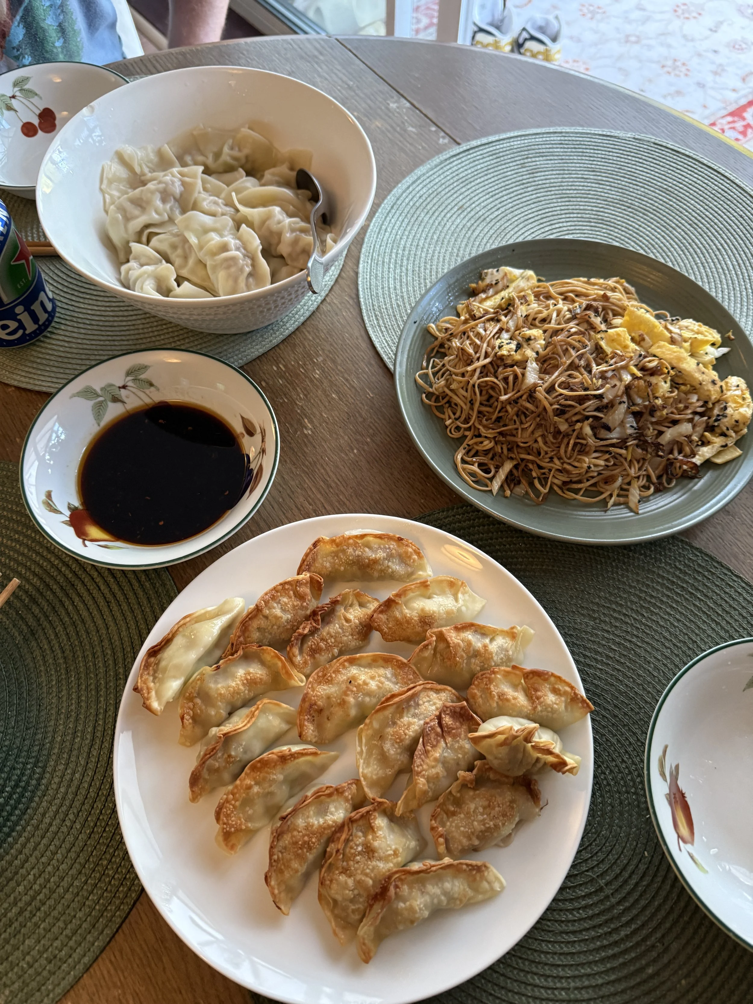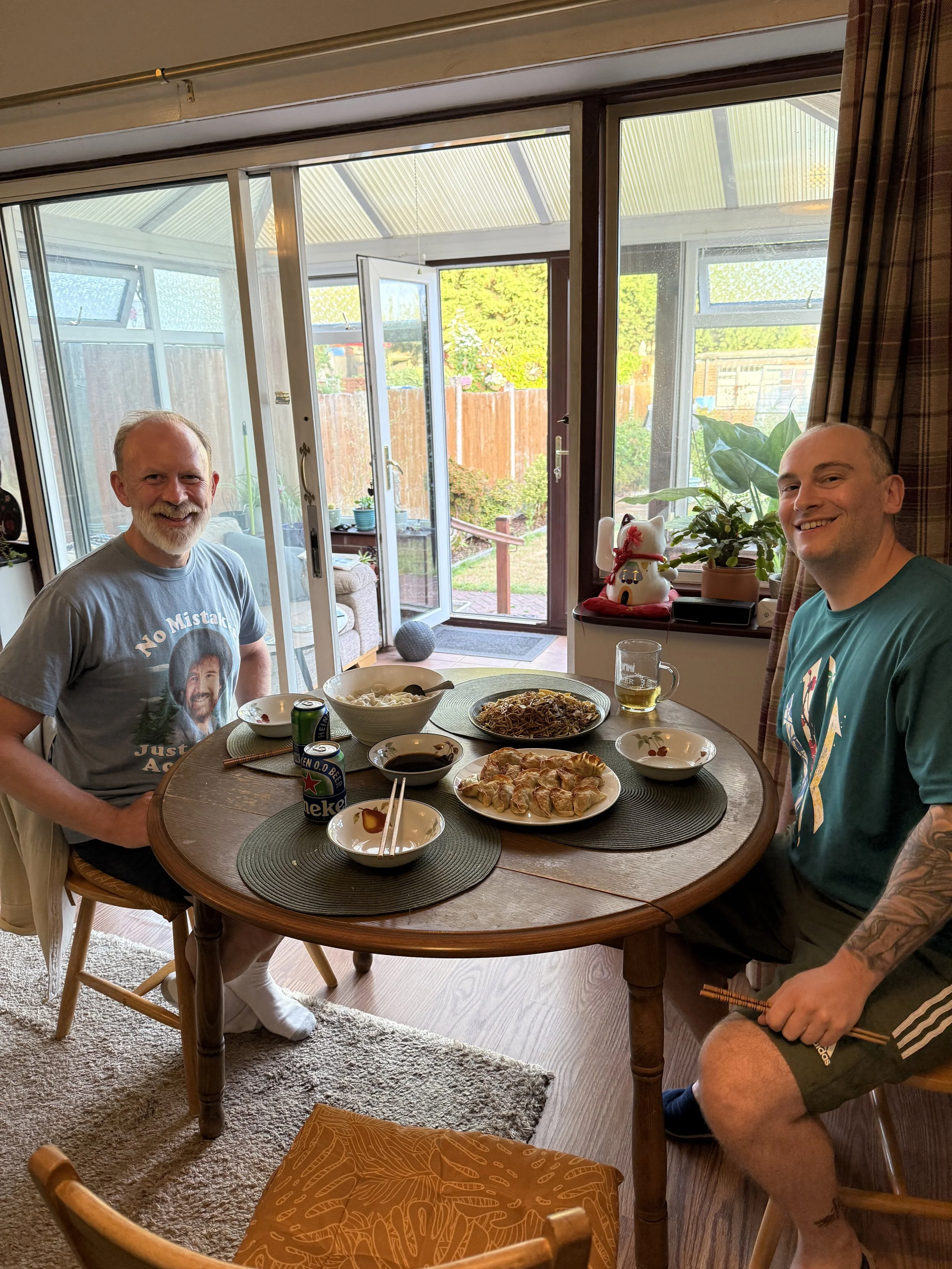 After each of us ordered a non-alcoholic drink (I had a Guinness Zero), we went home to make dumplings. Yes, that’s right, we made dinner together in Stourbridge. How cool is that! Moon prepped the ingredients and then all three of us made the dumplings together and Moon air fried them using her airfryer and they were delicious. Adrien made the sauce and, in my opinion, that’s the key ingredient. Get that right and the meal is a lock. Great job, Adrien!