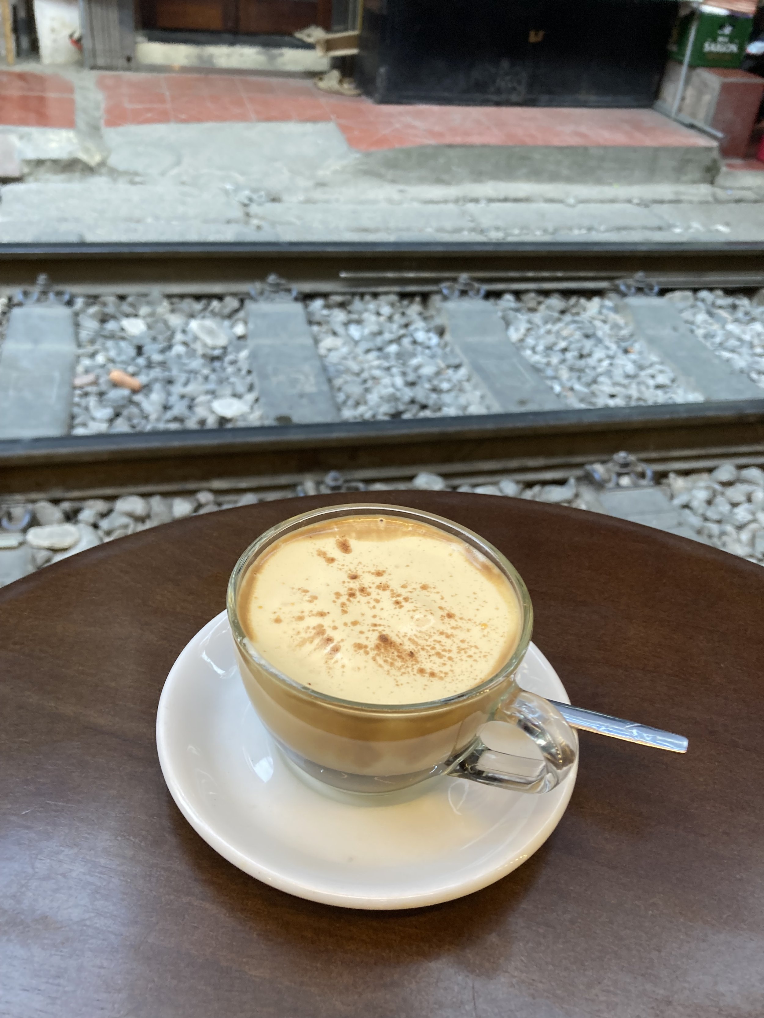 Egg coffee just off the train tracks; truly fascinating how close I am
