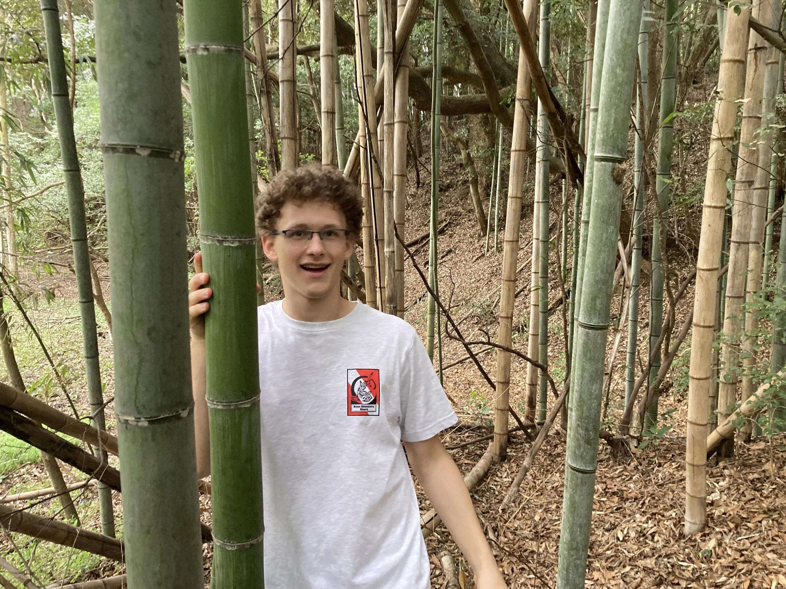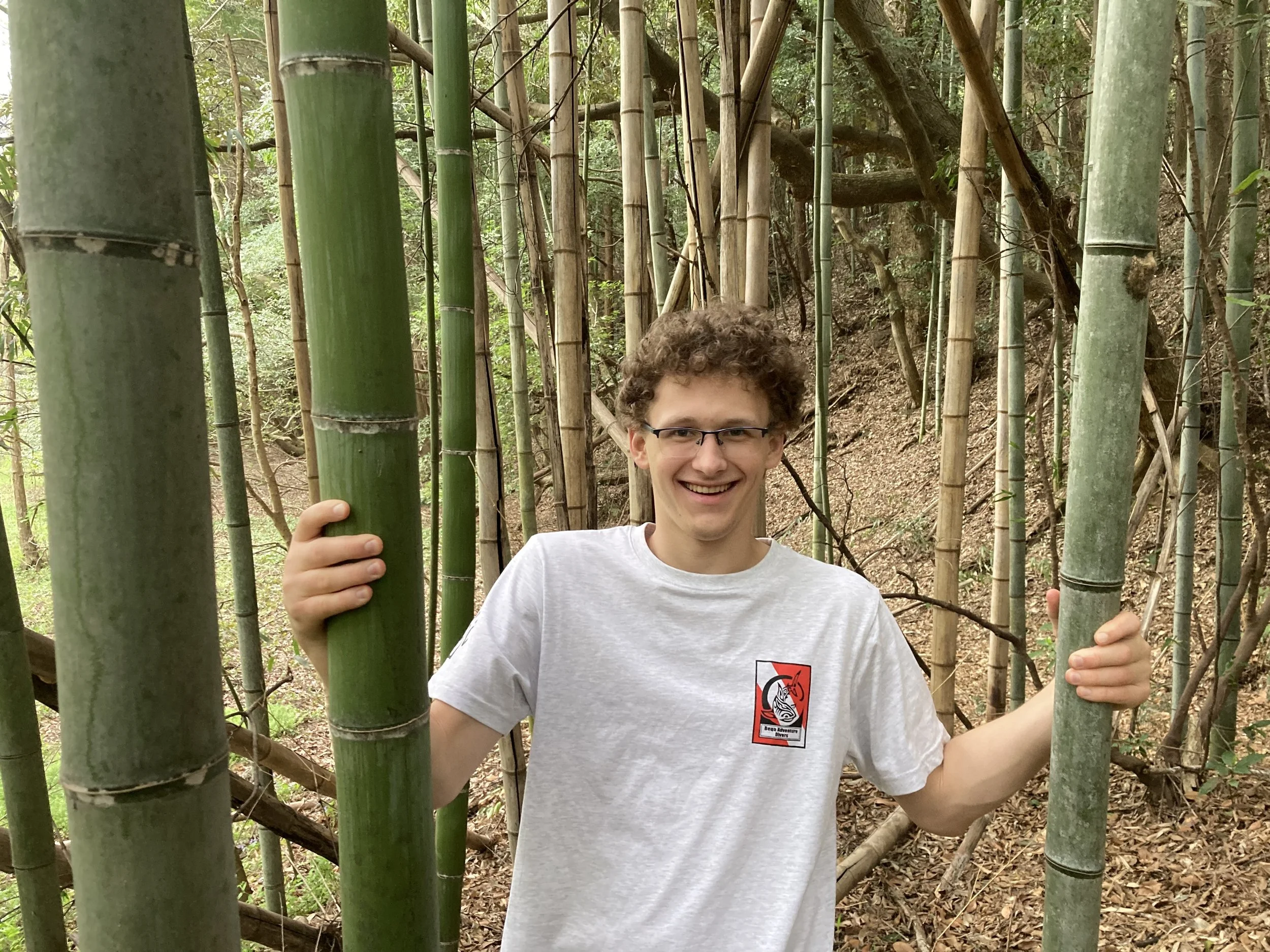 Will’s excited we are exploring one of many bamboo forests in Shiroi