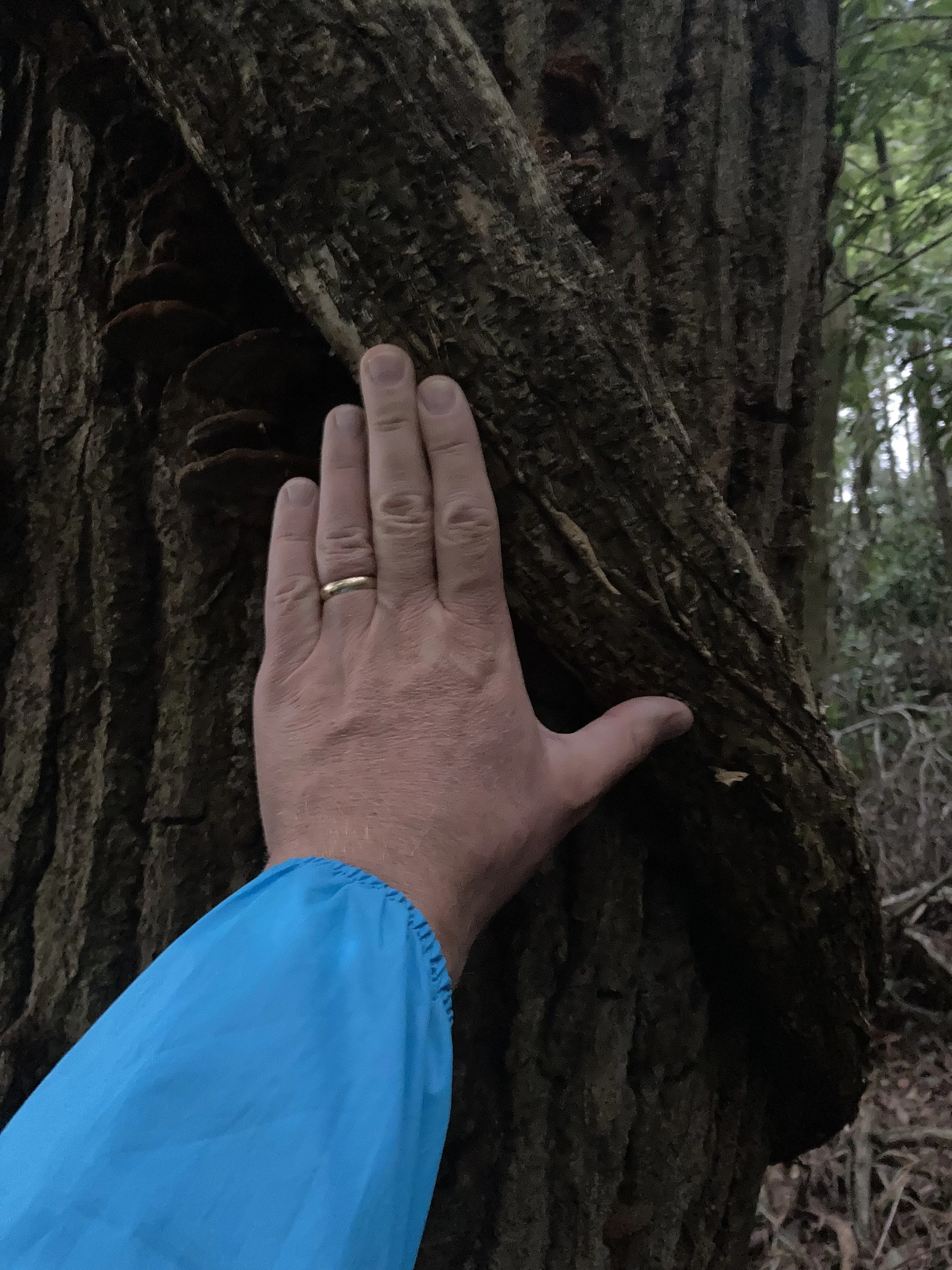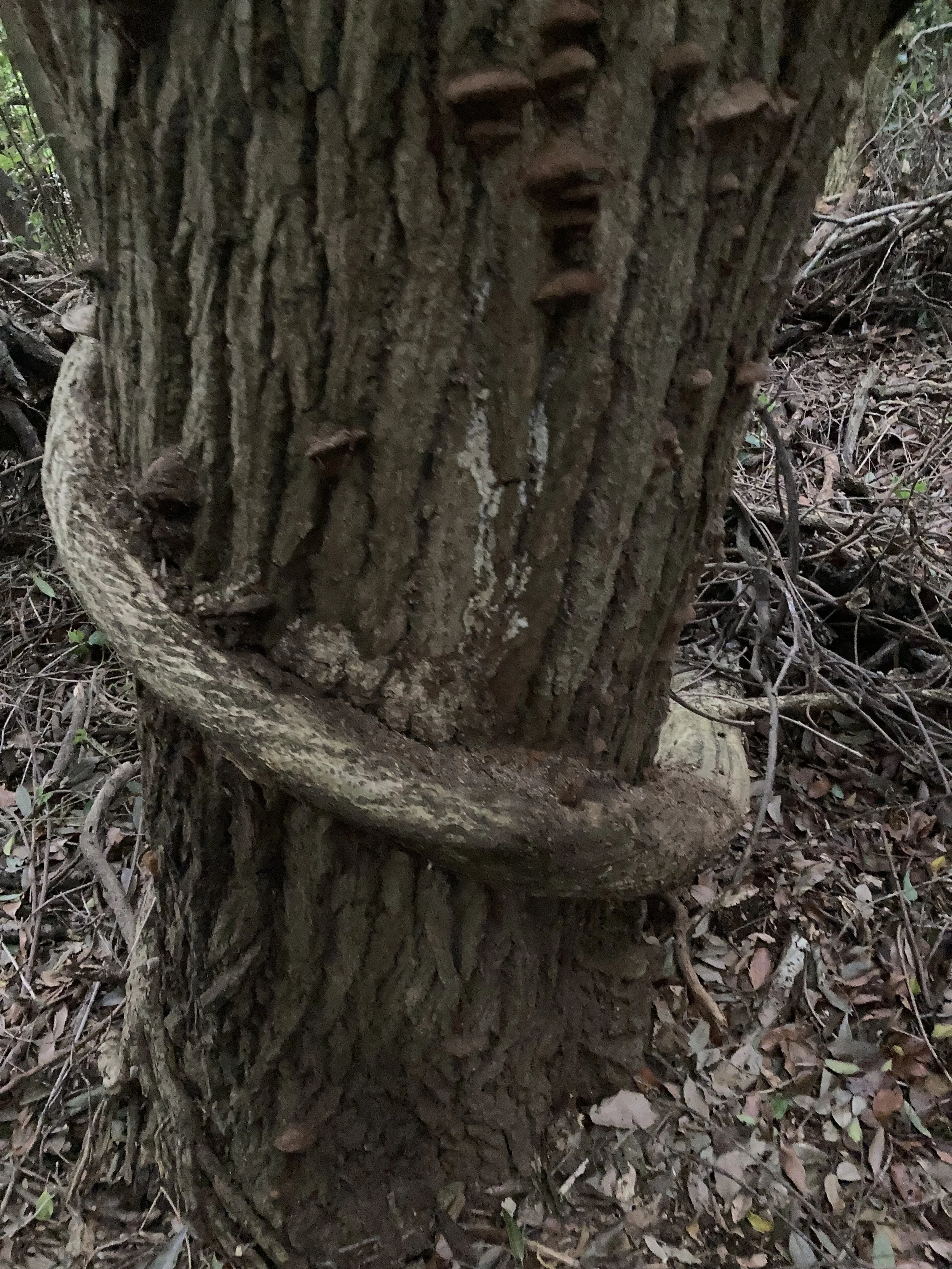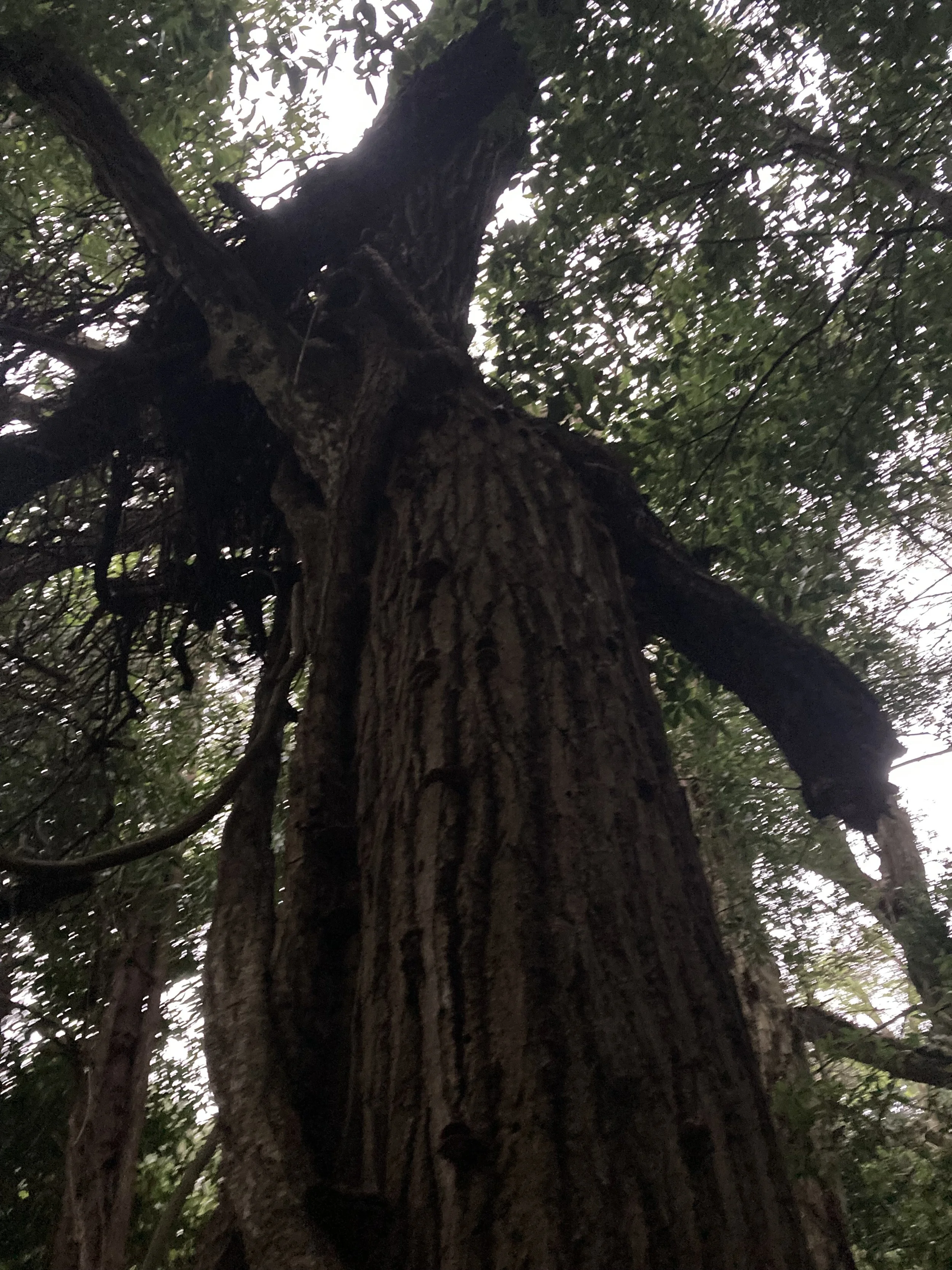 Continuing on, we found this incredible vine that was thicker than my hand. It looked like it was strangling the tree, but the tree seemed to be doing okay despite the apparent death grip of the vine that went up as far as we could see. The trees were a blend of the familiar and the unique. Everything from cherry blossoms and Japanese maples (is that redundant in Japan?) to trees that looked like the bark was painted on. Totally smooth to the touch but black spots that appeared to be indents. There was even a thorn tree where the thorns were hidden until you accidentally grabbed it to steady yourself up or down a nearby hill. I only made that mistake the one time, as it was quite painful and unexpected at the tree trunk area.
