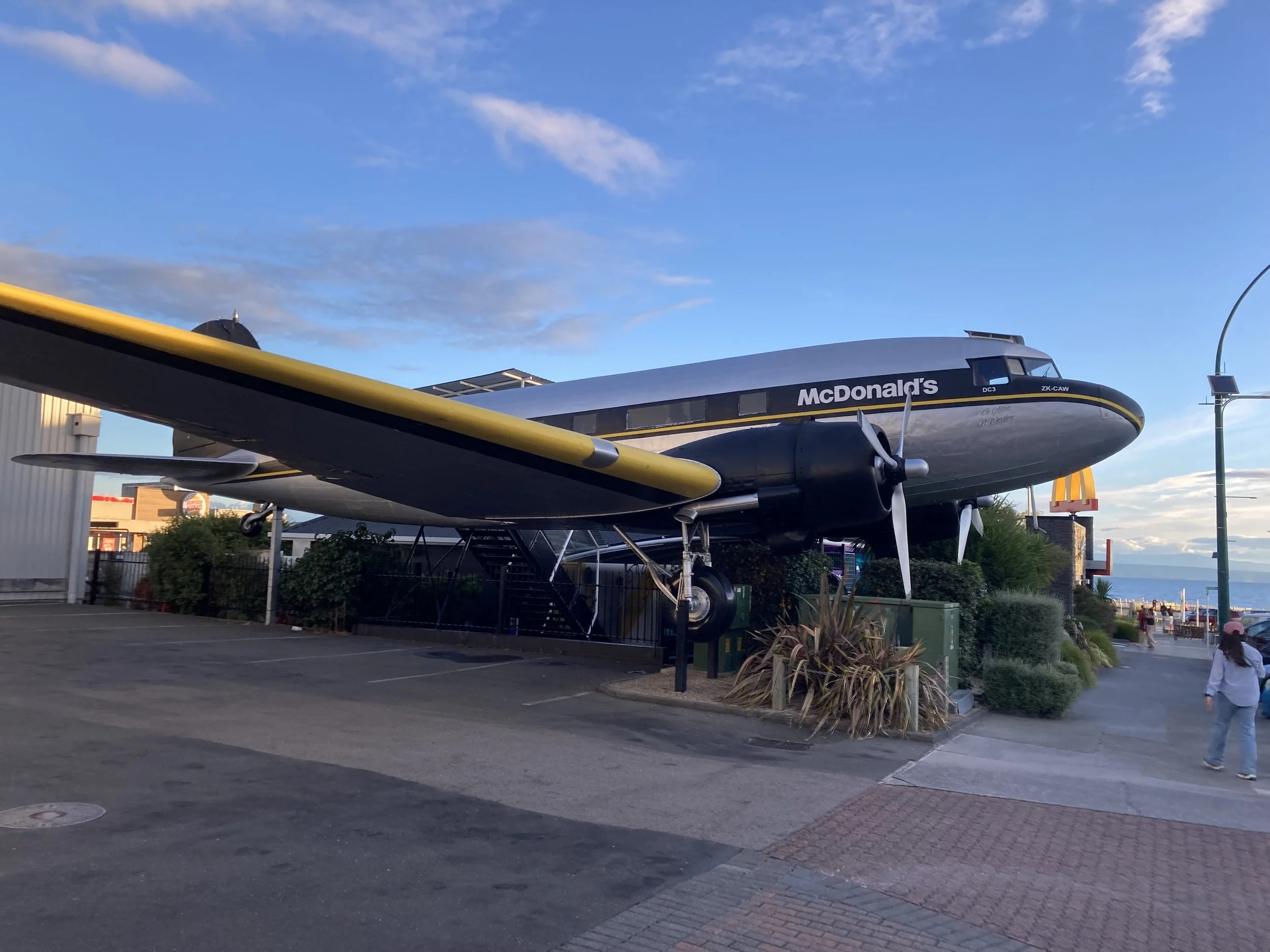 But despite the food differences (this one is competing with KFC on the extra crispy chicken front), the ability to eat inside the airplane likely put them over the top in this competition. Either way this has been a 100% authentic New Zealand day. Or, as they spray paint on their walls: