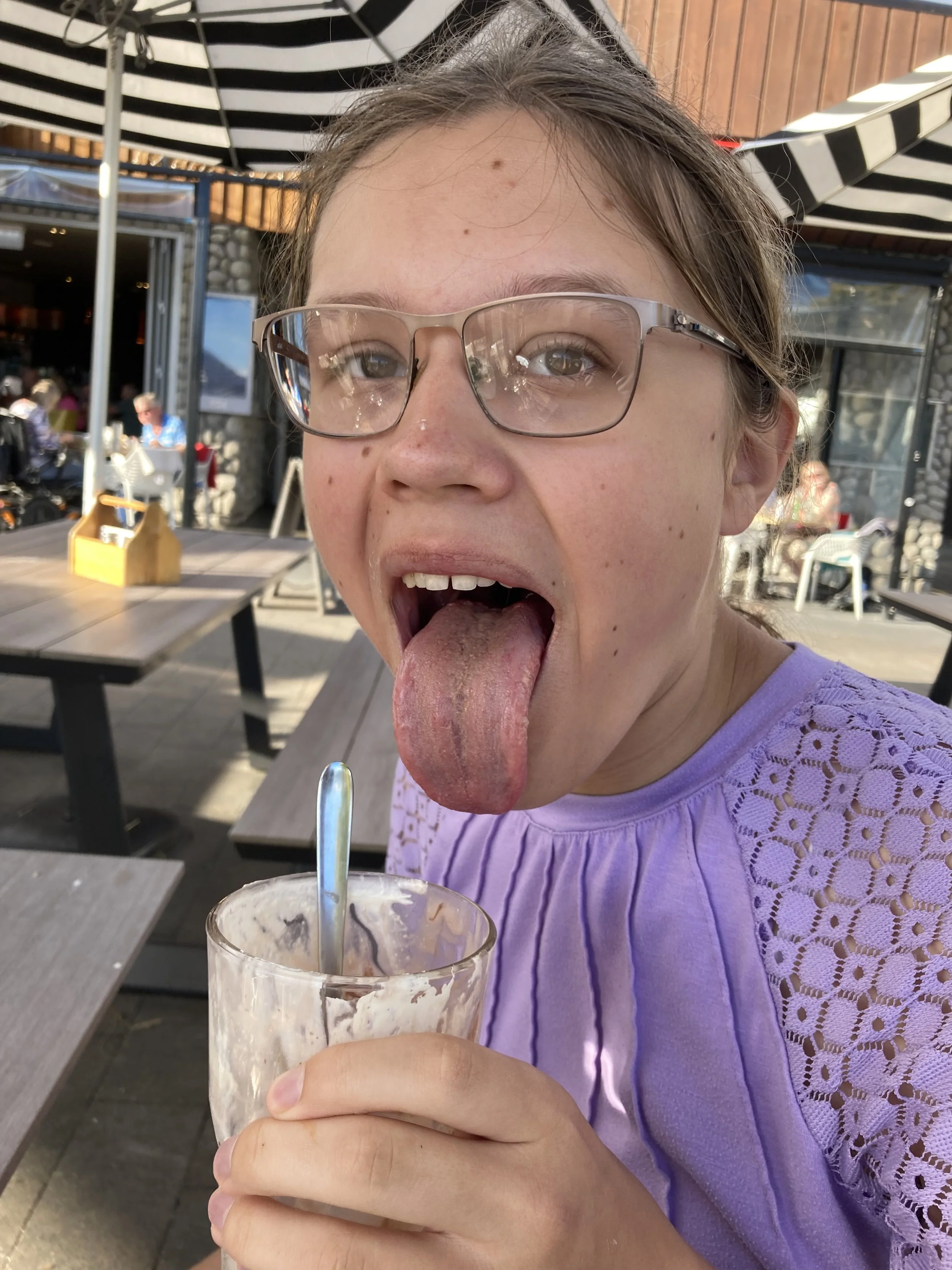 After we did all 4 rides (and loved the uniqueness of each one) we drove home and took Elena out to an amazing New Zealand restaurant and dessert place called Dixie Browns. The food was amazing and we’d go back just for that, but we were sitting near the edge of the lake with sweeping views and the best dessert we’ve had so far!