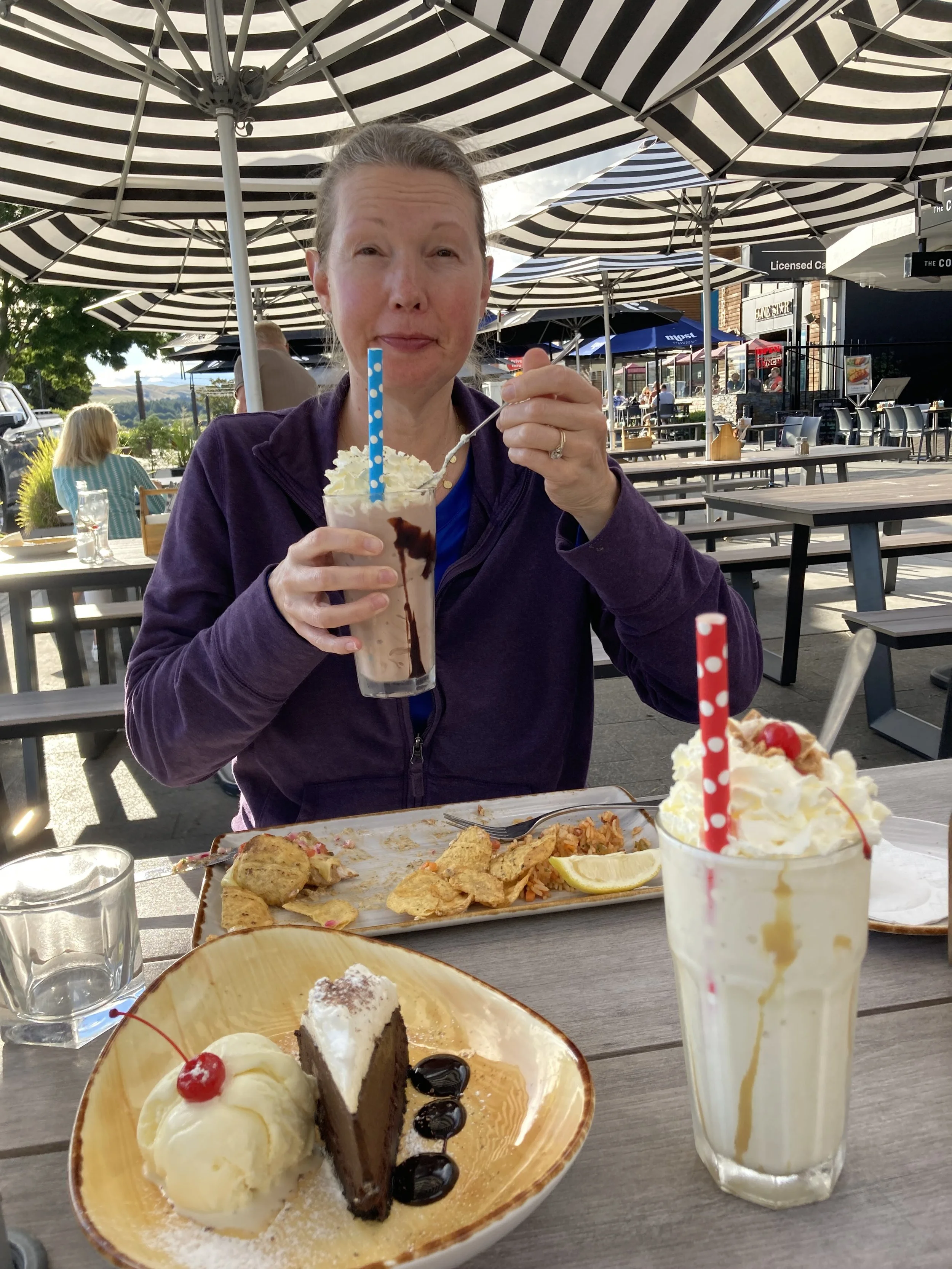 Elena enjoyed double chocolate milkshake and Mississippi Mud Pie